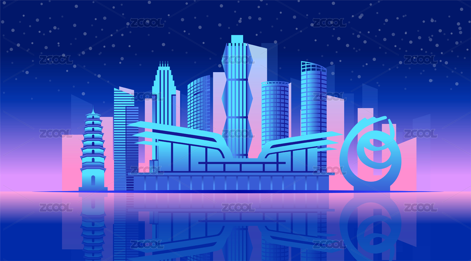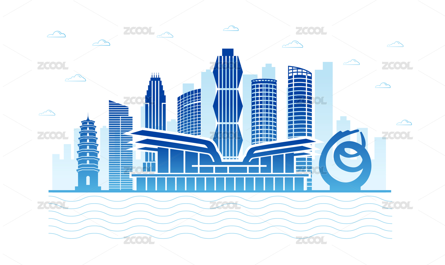 中國江蘇省連云港市商務(wù)城市彩色插畫