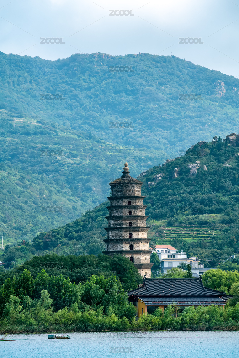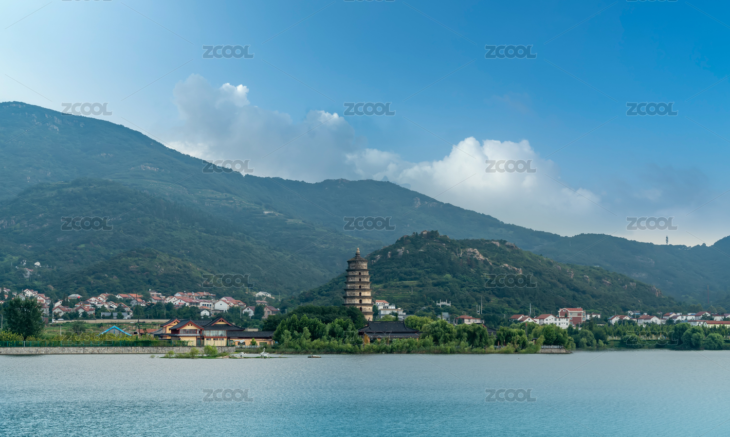 江蘇連云港花果山水庫和阿育王塔