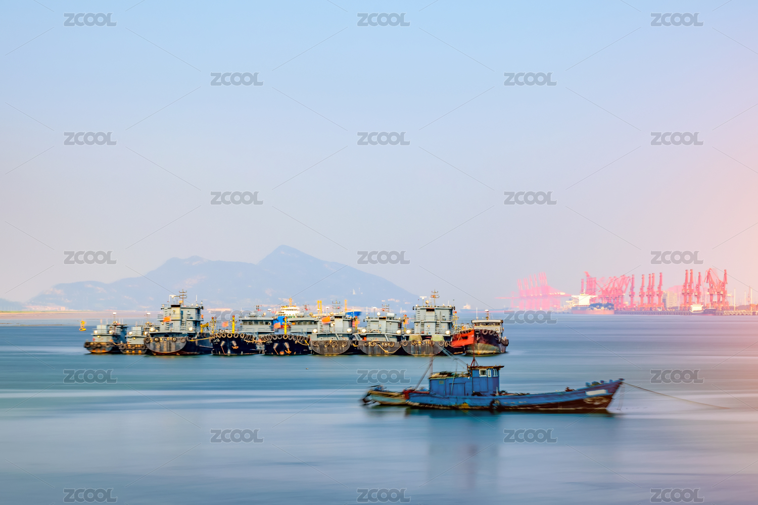 中國江蘇連云港海灘漁船碼頭風(fēng)光