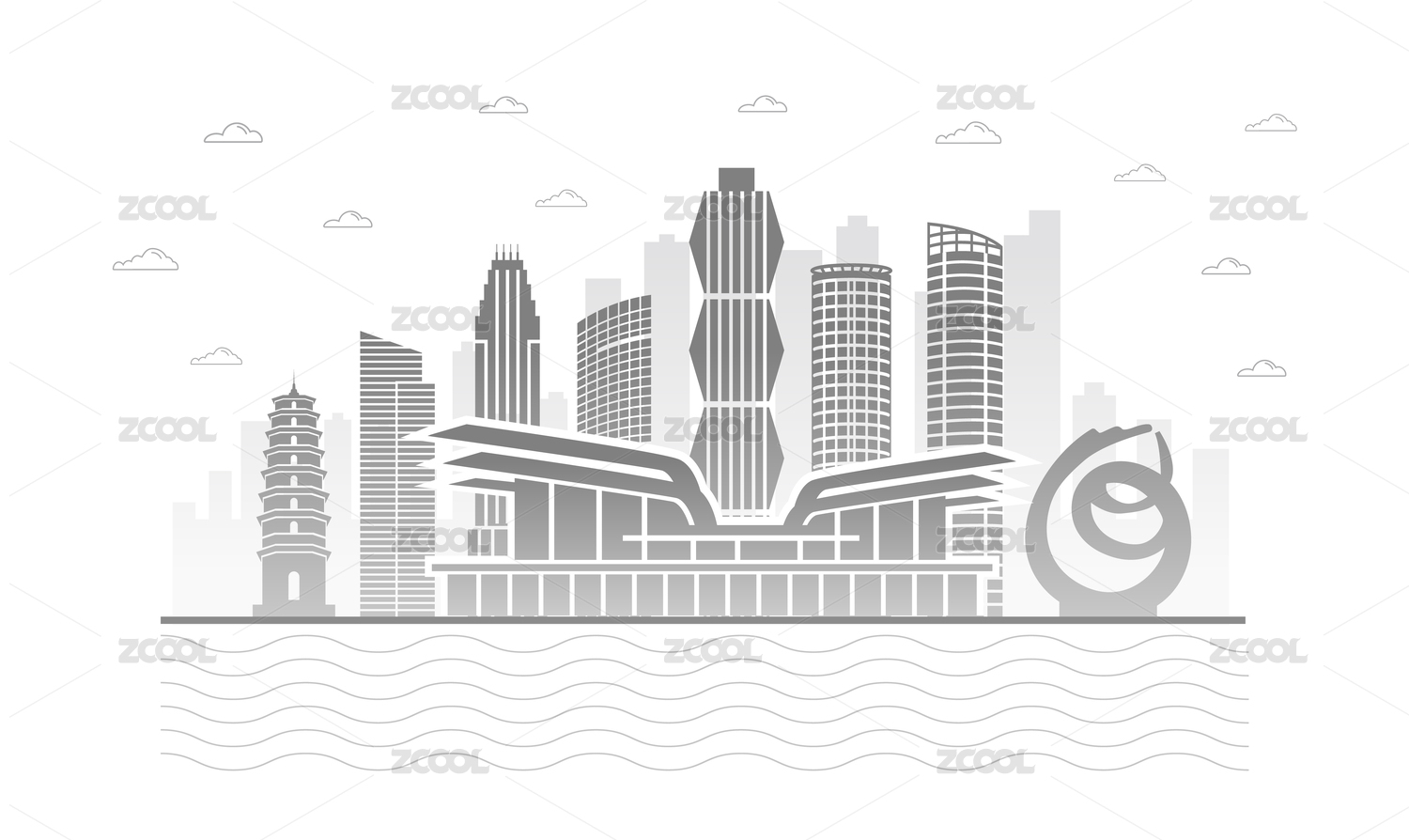 中國江蘇省連云港市地標(biāo)建筑剪影