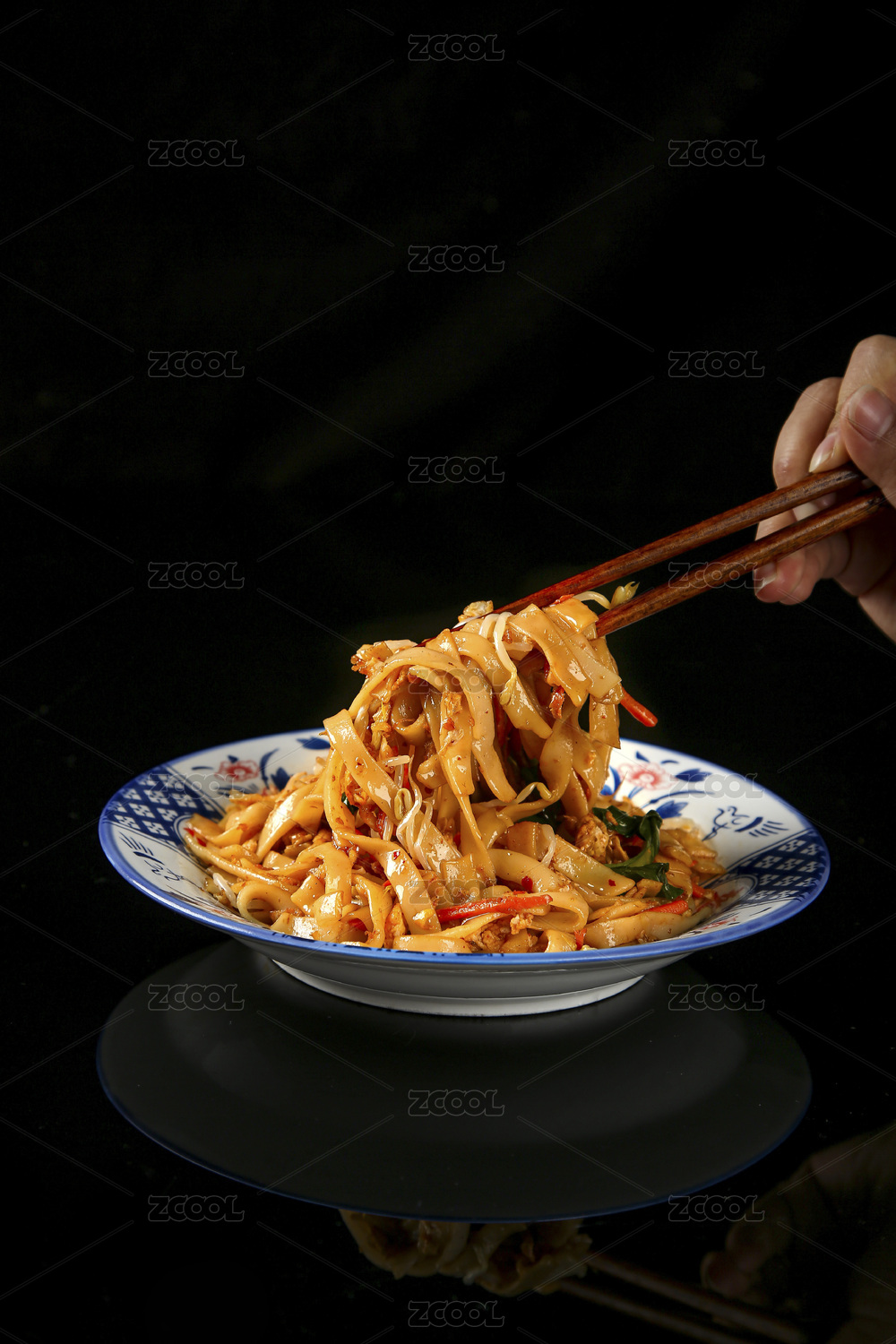 木底上的炒河粉