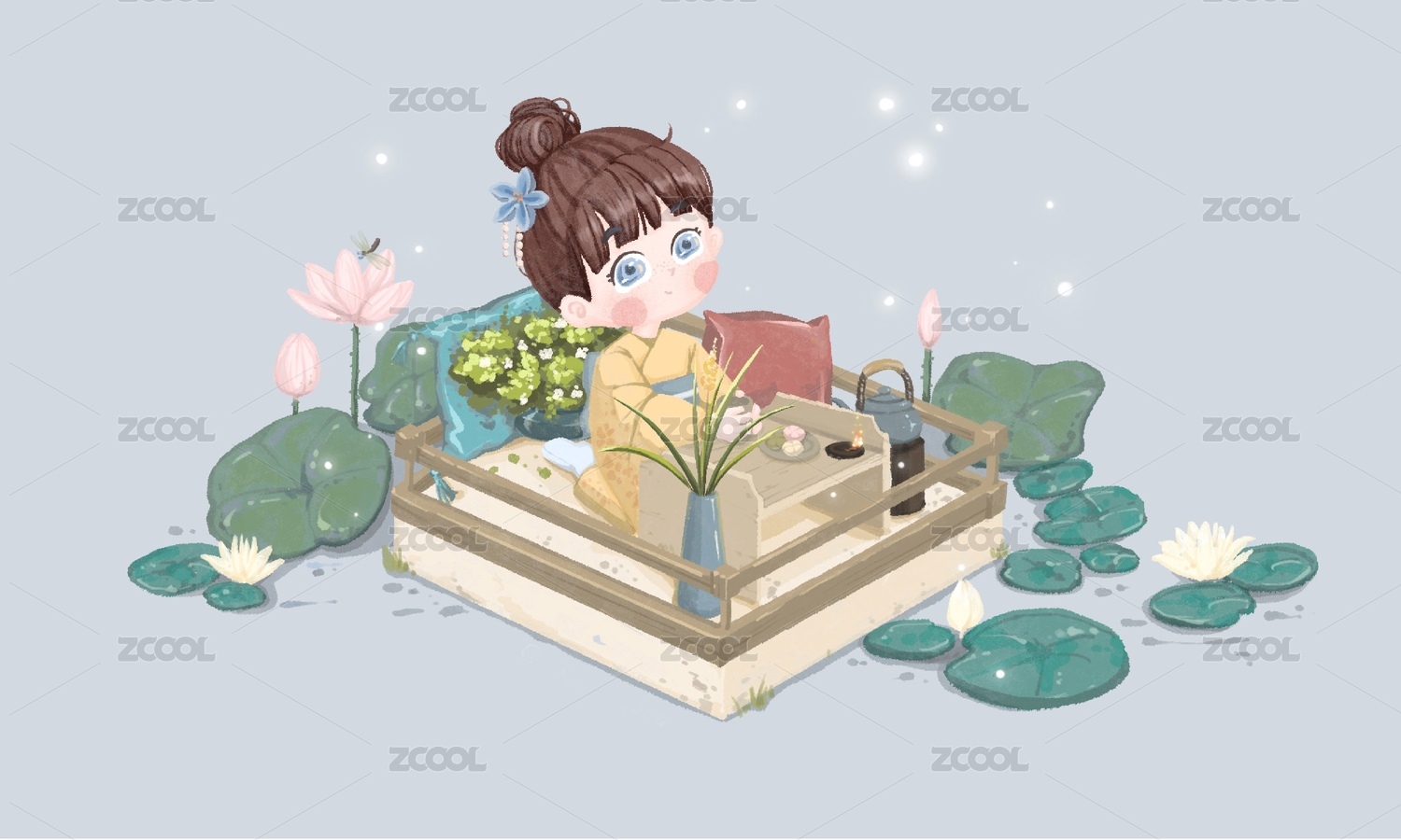 傳統(tǒng)意境矢量國(guó)風(fēng)元素荷葉蓮葉