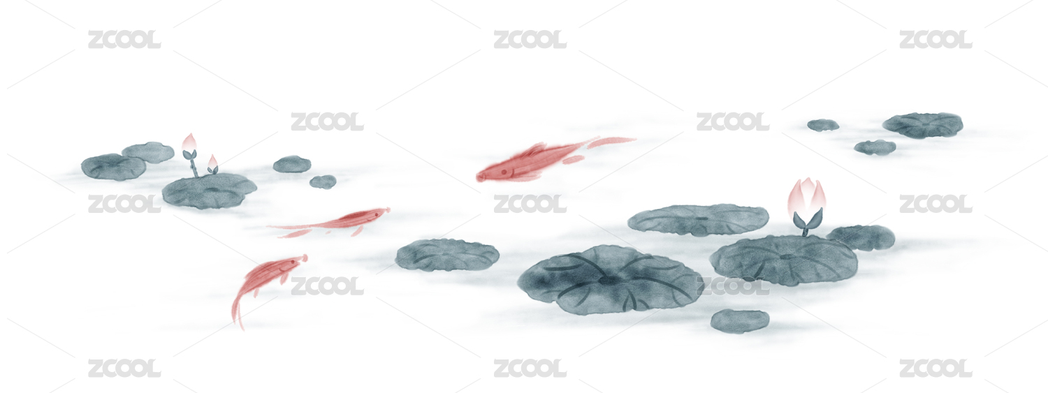 中國(guó)風(fēng)水墨魚戲蓮葉間