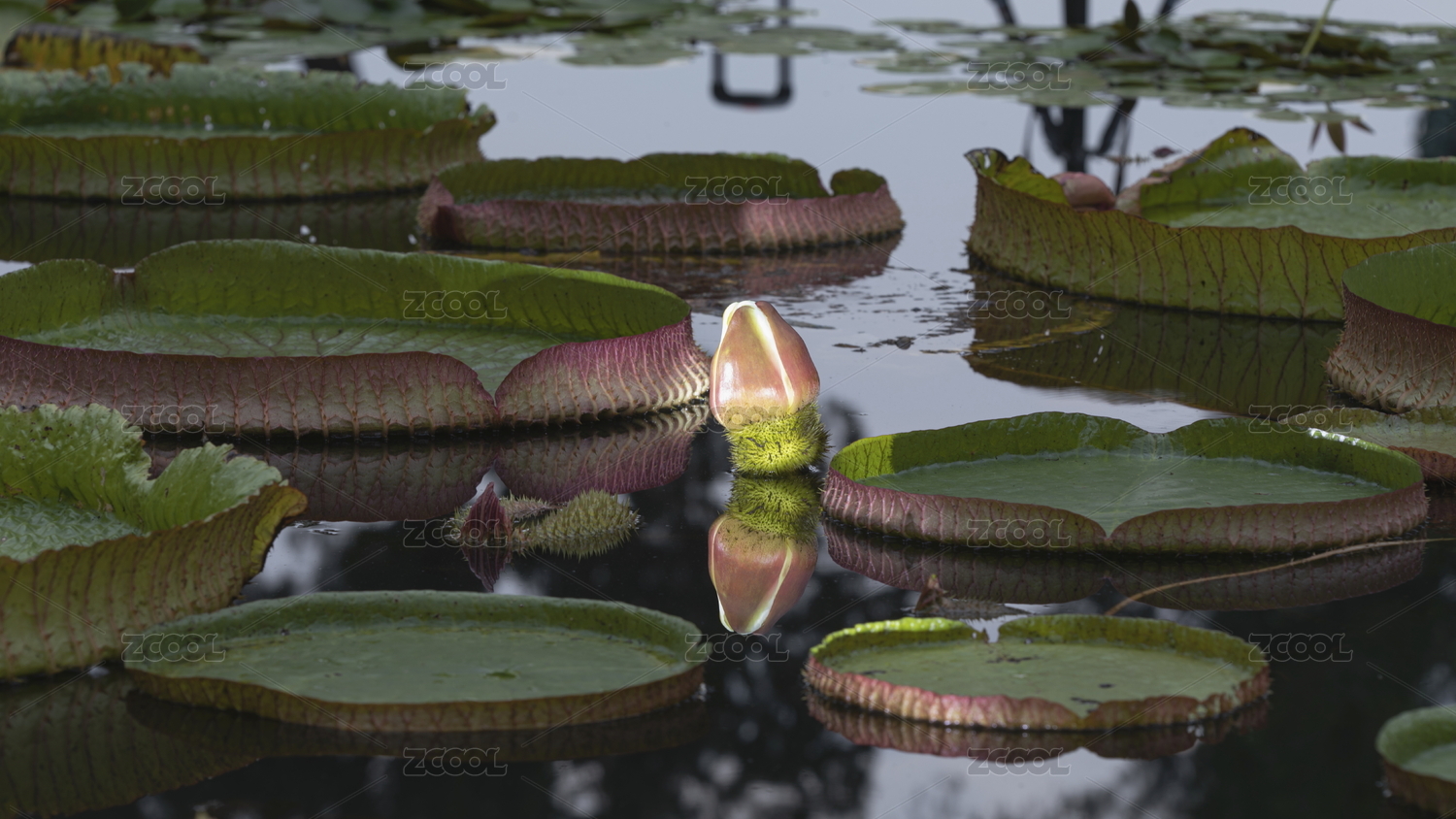 夏季陽(yáng)光照耀著水面上生長(zhǎng)的王蓮蓮葉