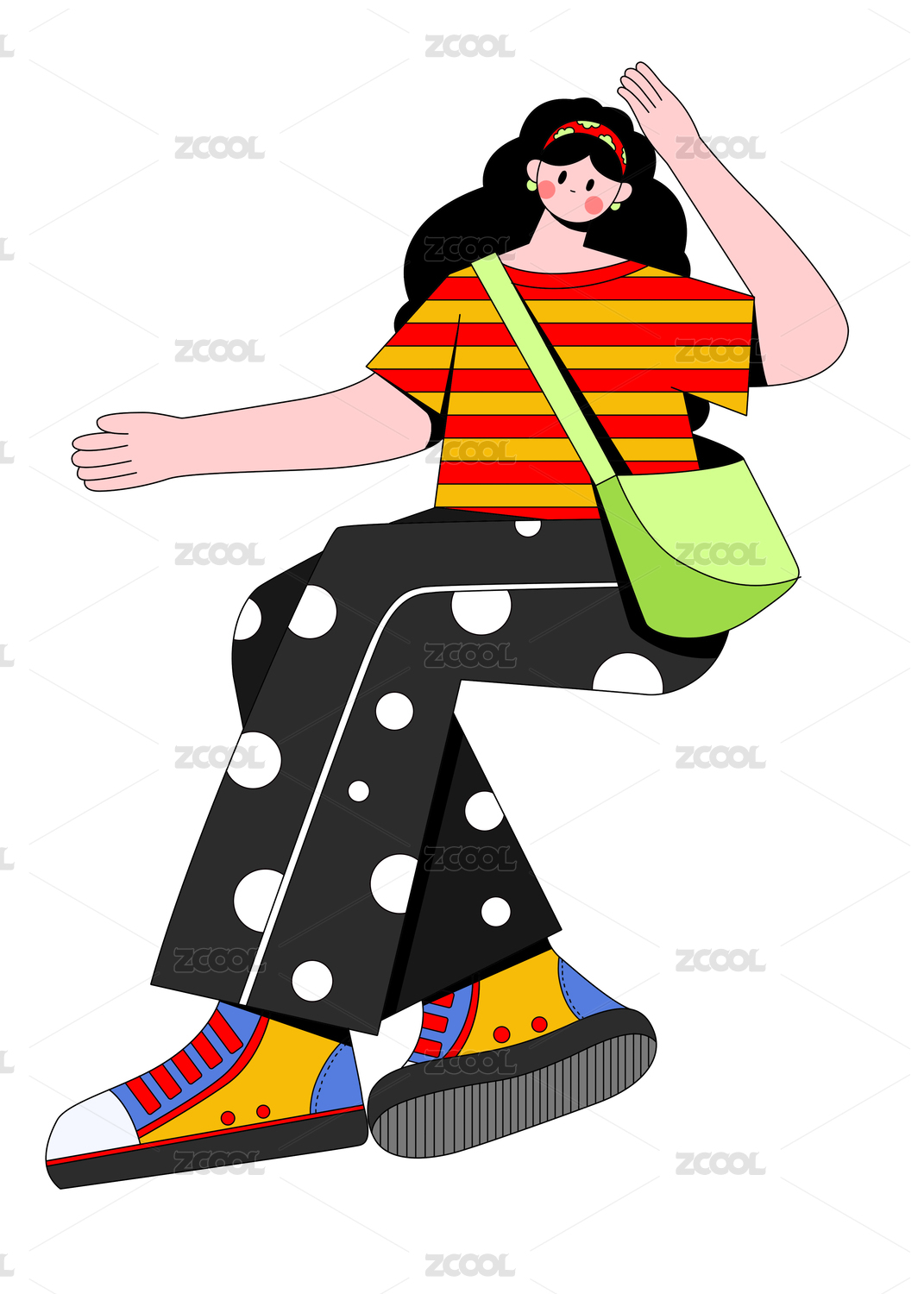 扁平風(fēng)描邊小清新波點(diǎn)短裙女孩