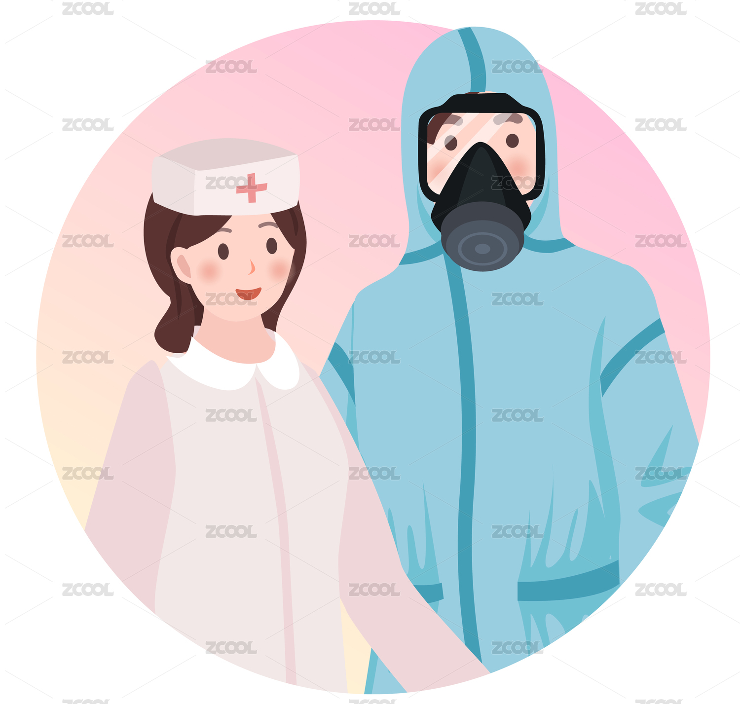 兩位站立的女性護(hù)士半身像 手繪插畫(huà)
