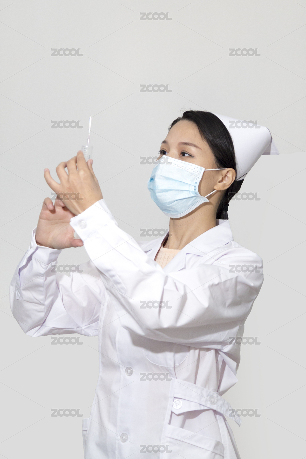 帶著口罩,手拿針管的亞洲女護(hù)士