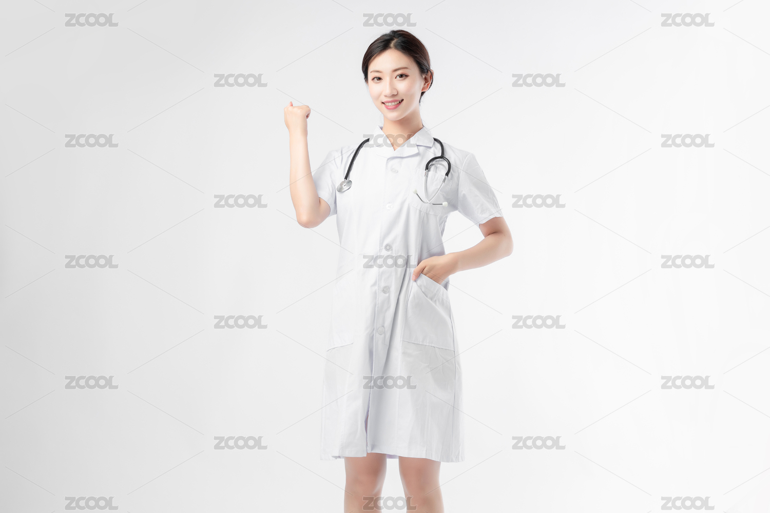 白色背景里穿粉色護(hù)士服的年輕女性醫(yī)療人員
