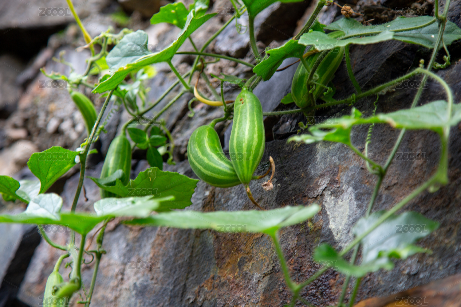 巖石縫隙中的綠色瓜果