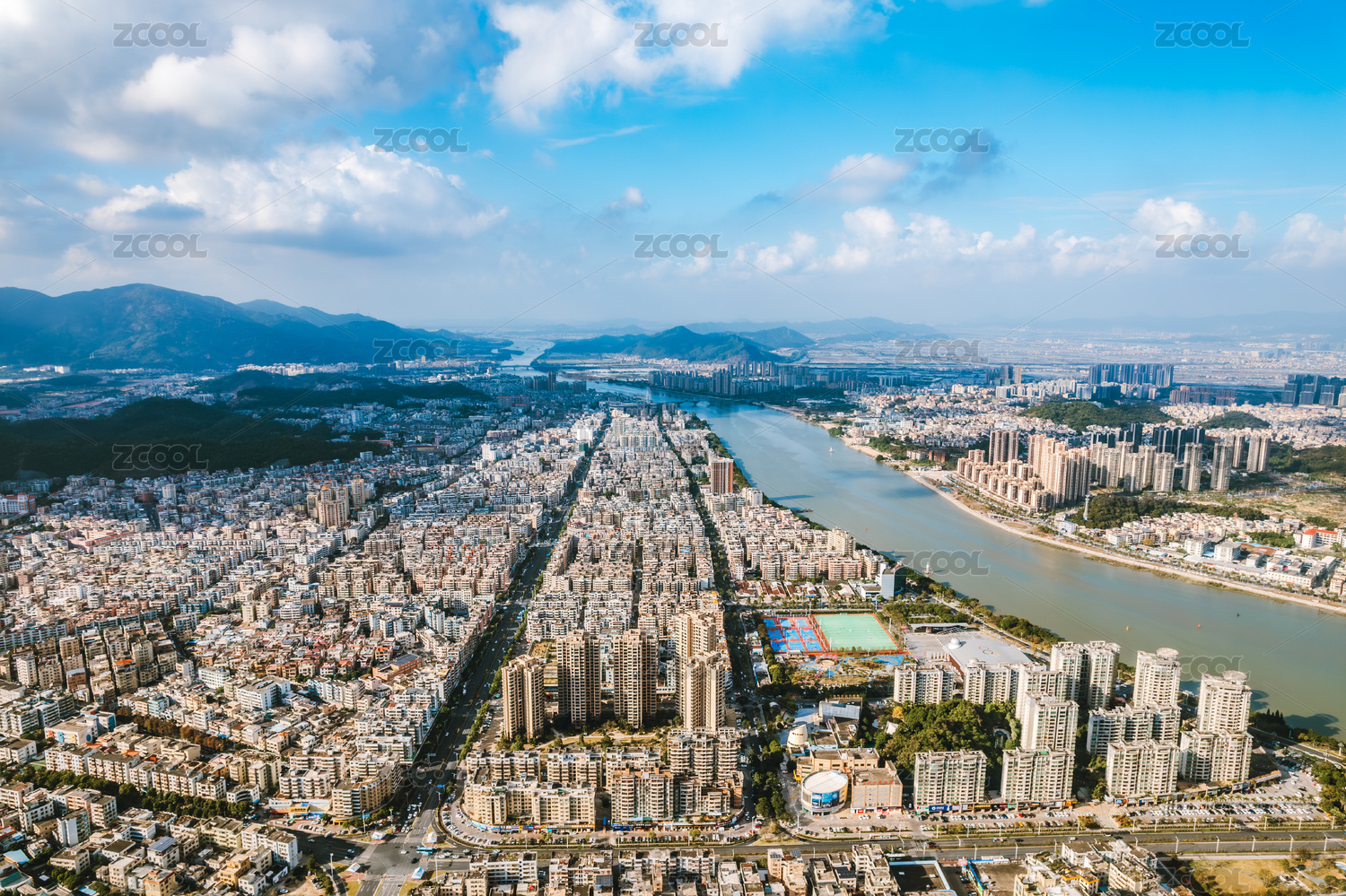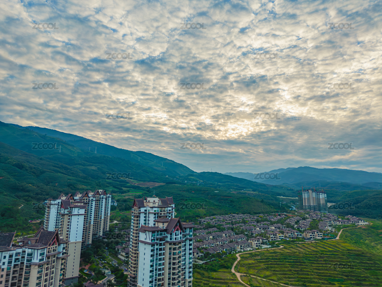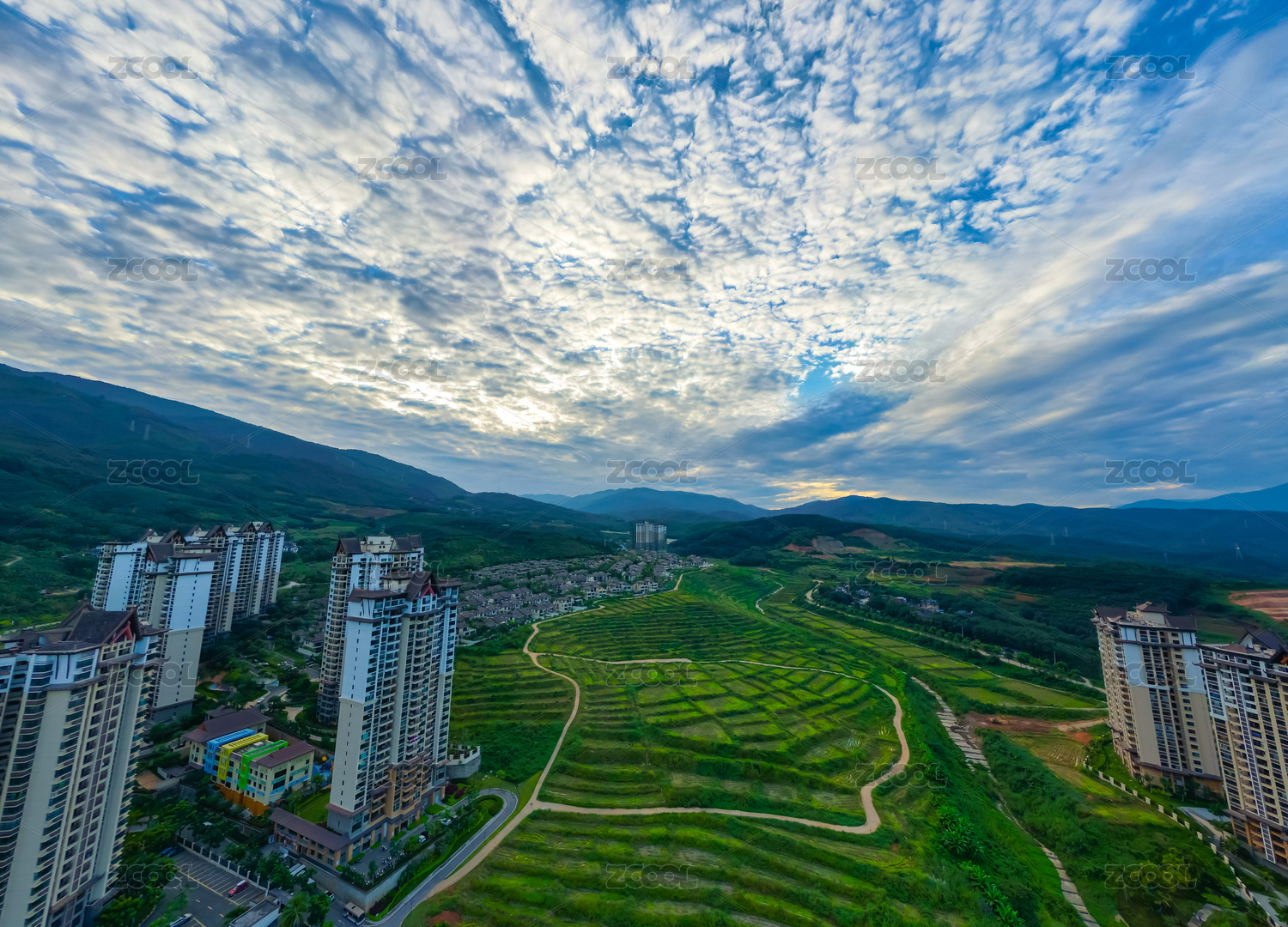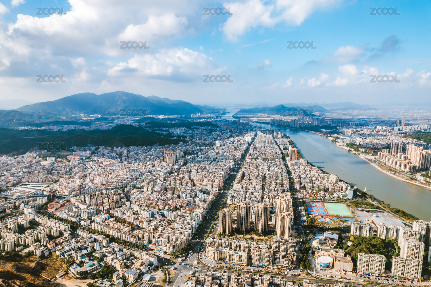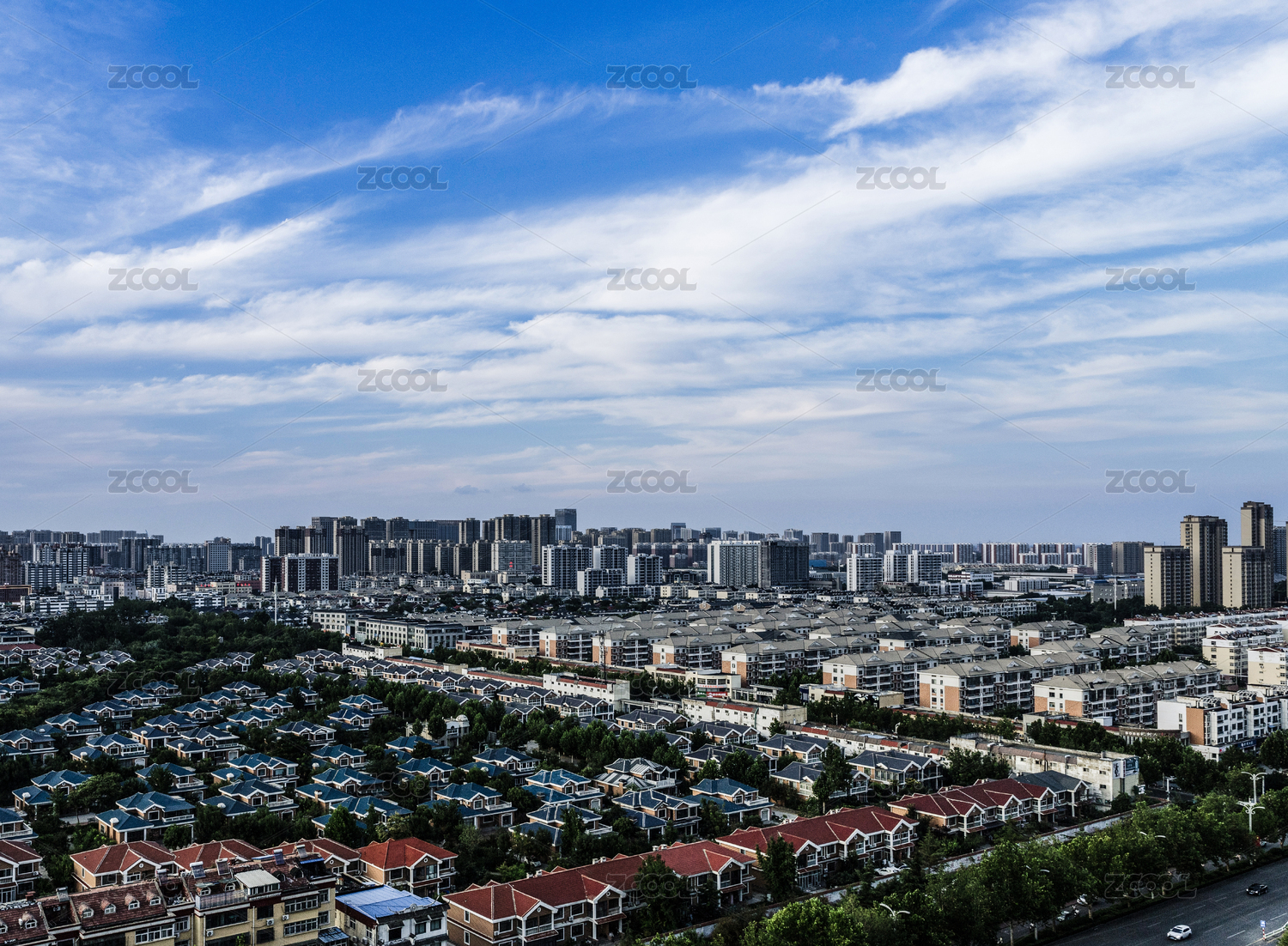 城市全景下的居民區(qū)風(fēng)光