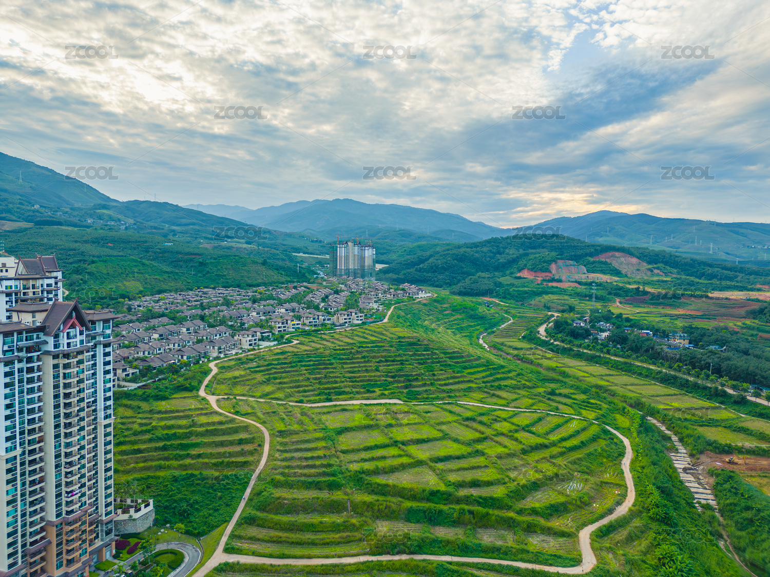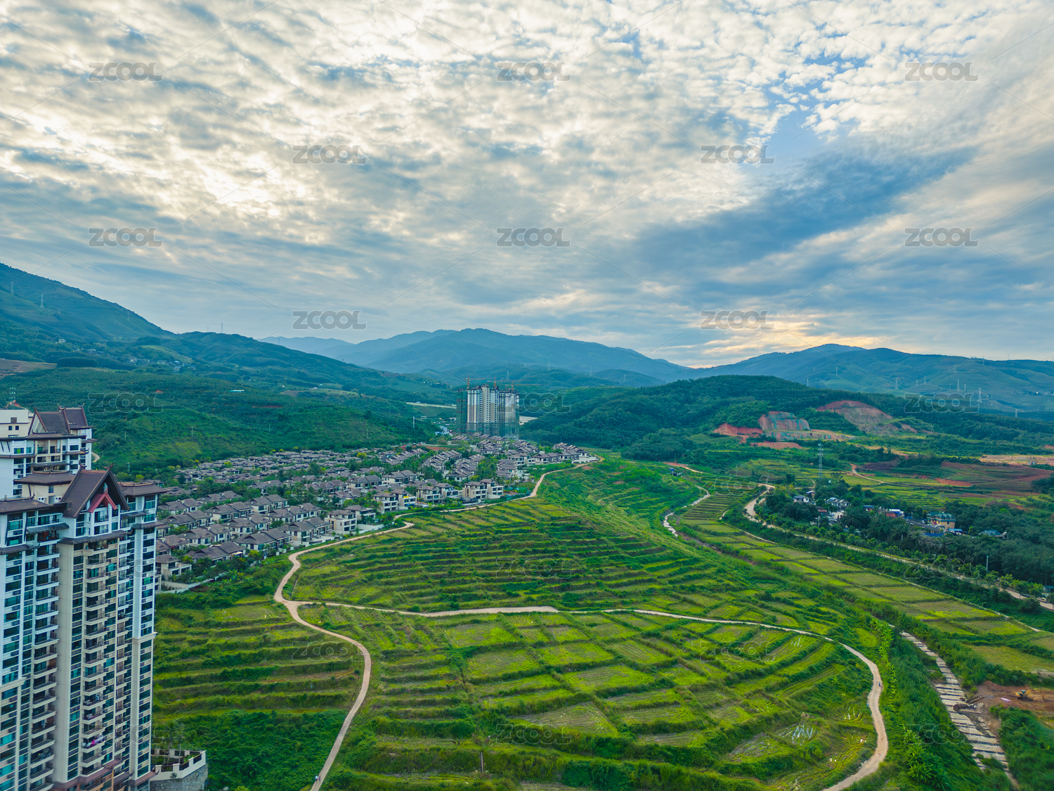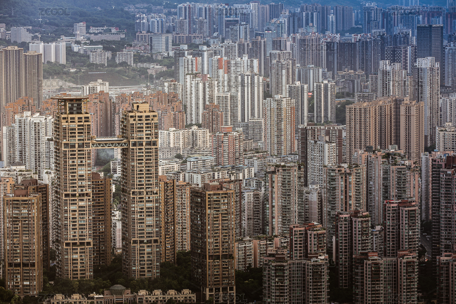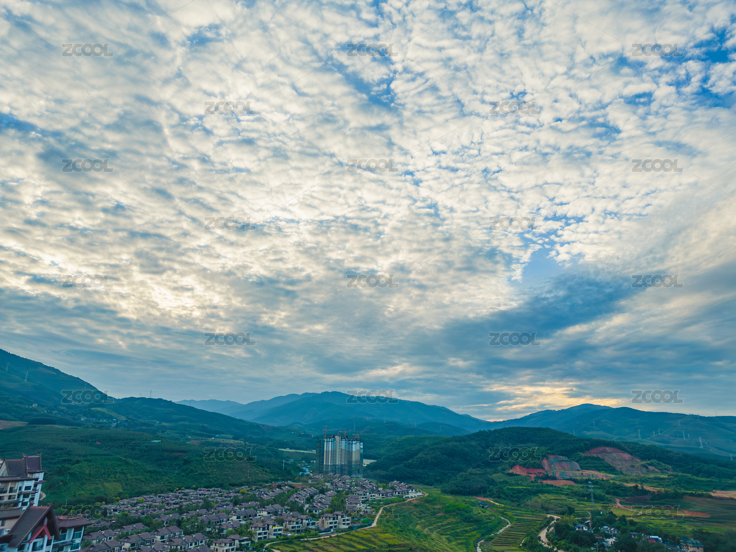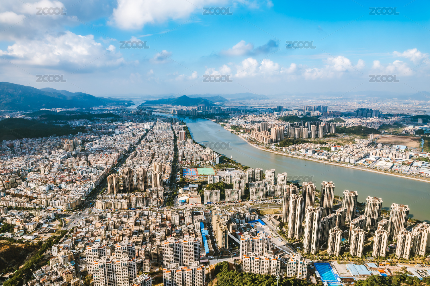 城市全景下的居民區(qū)風(fēng)光