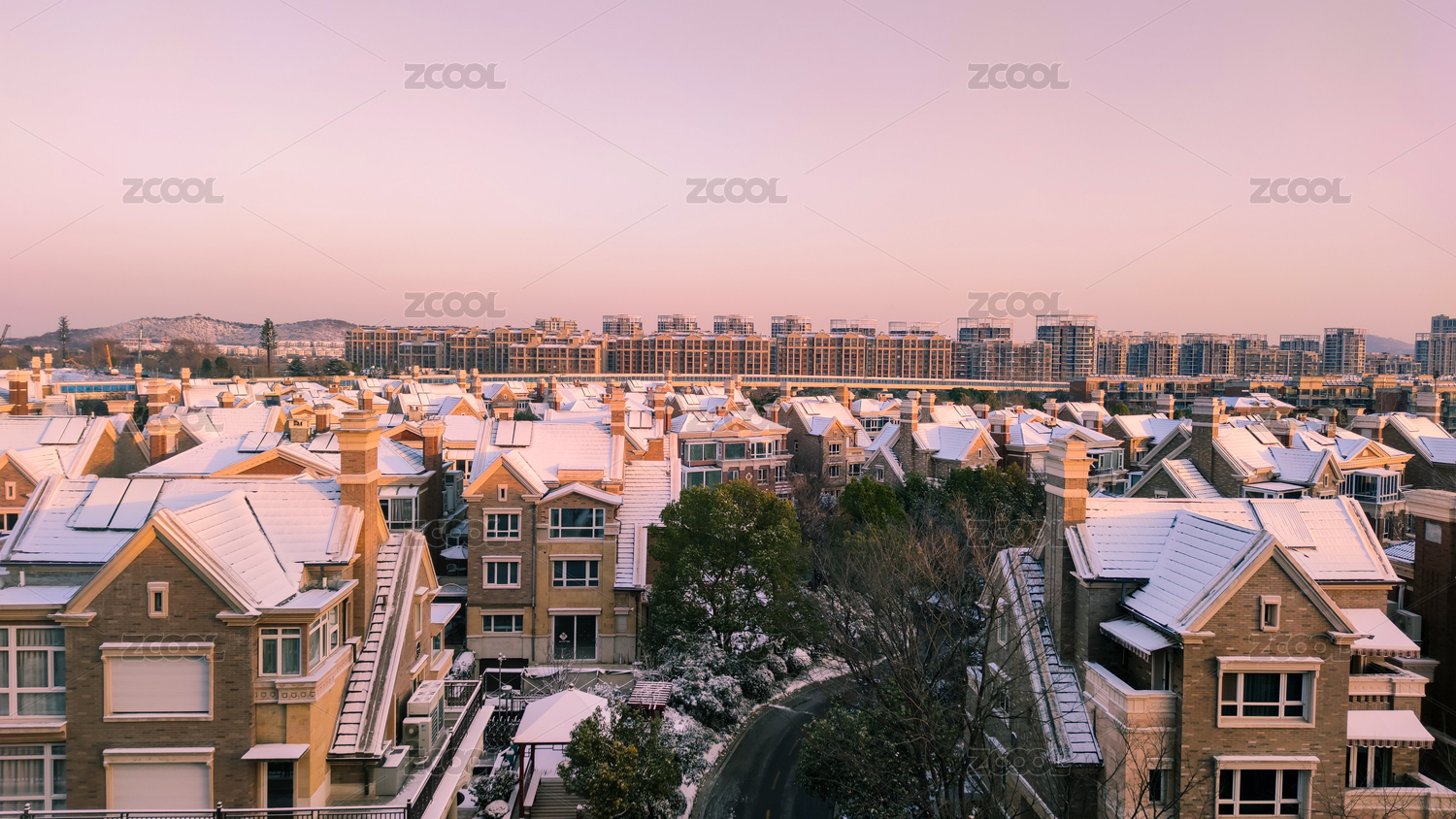 初雪后的居民小區(qū)