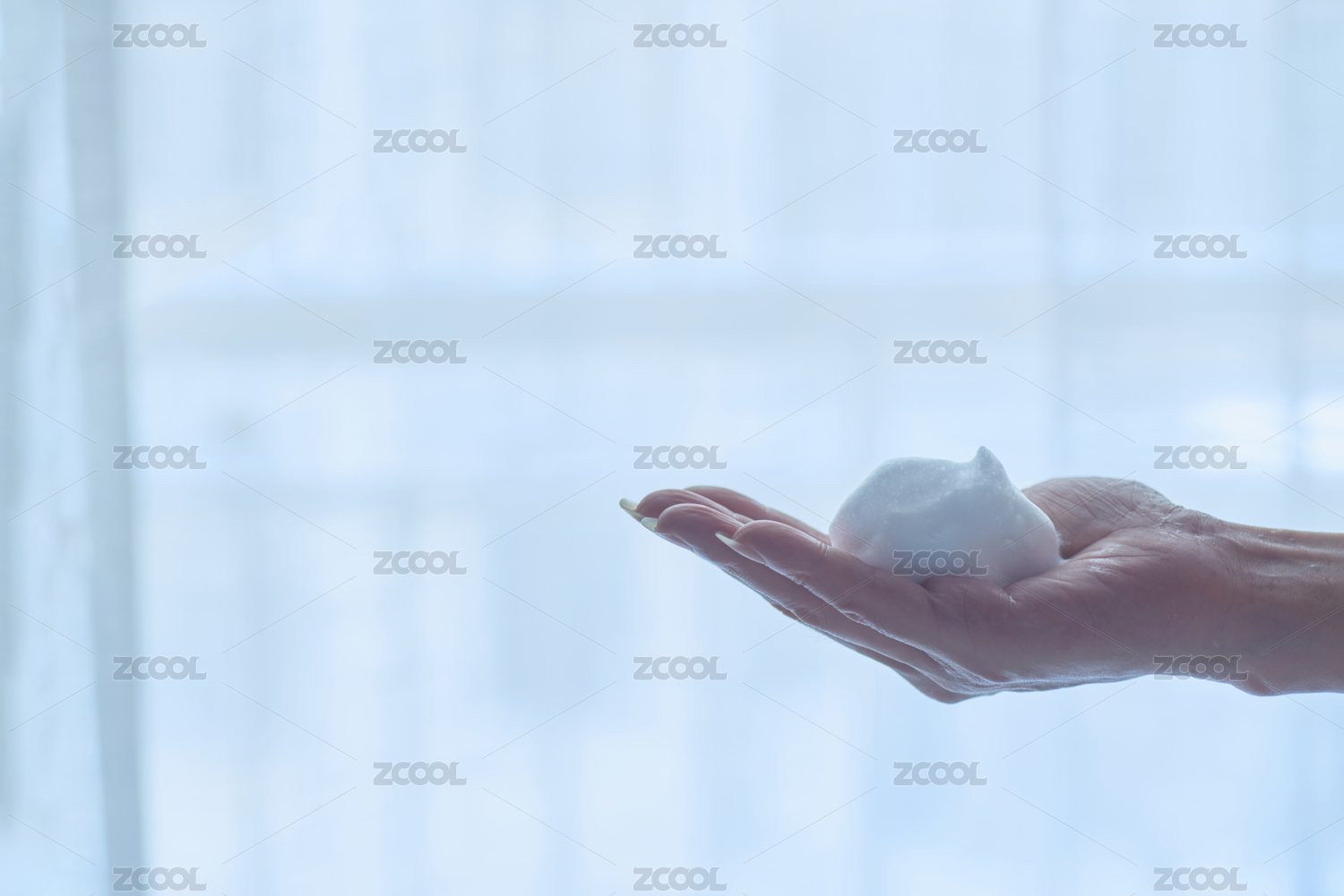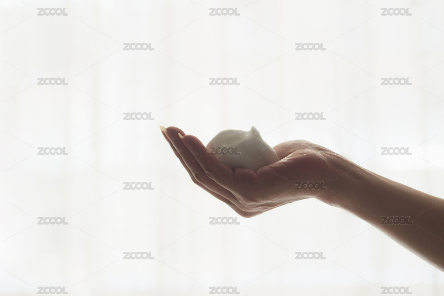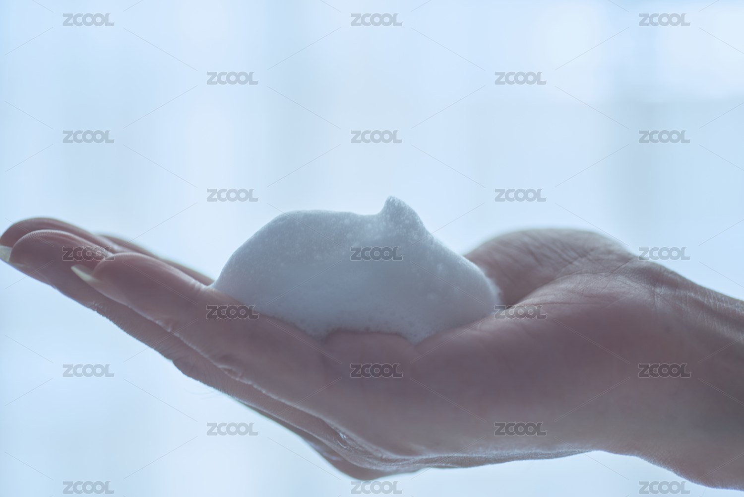 手掌中一團綿密的潔面泡沫