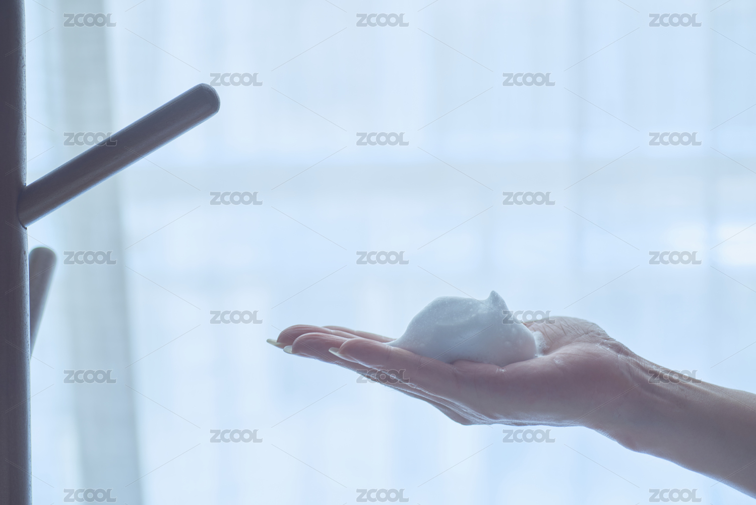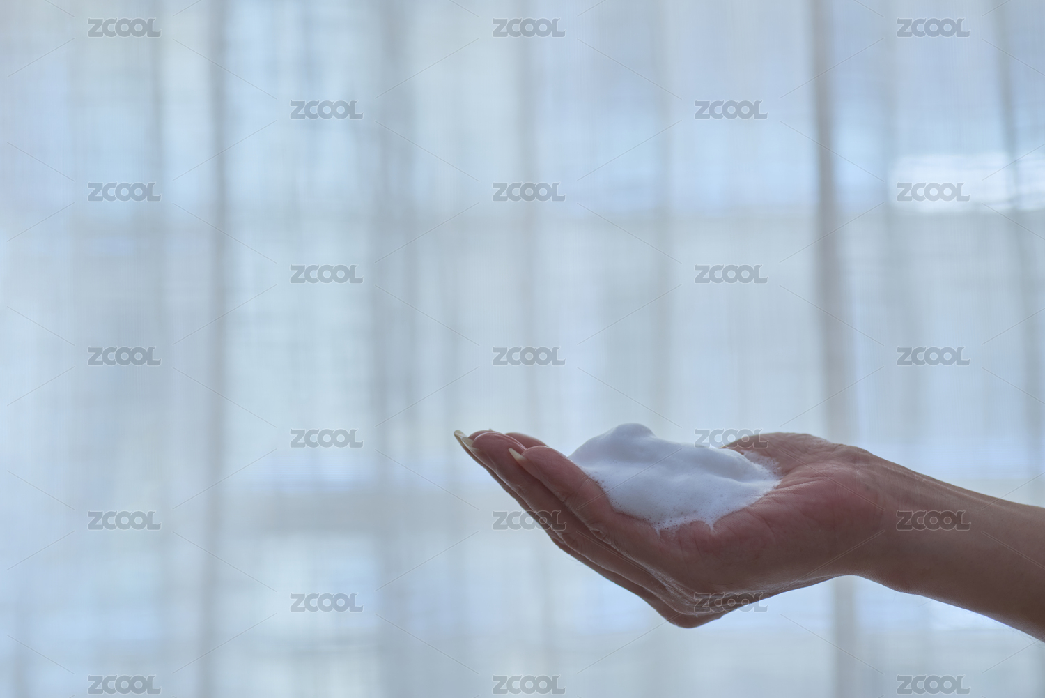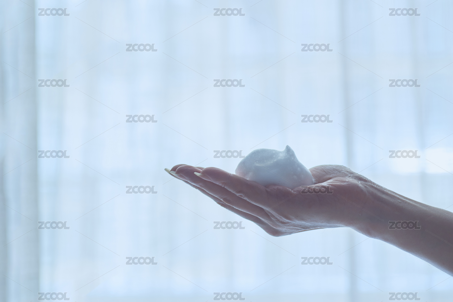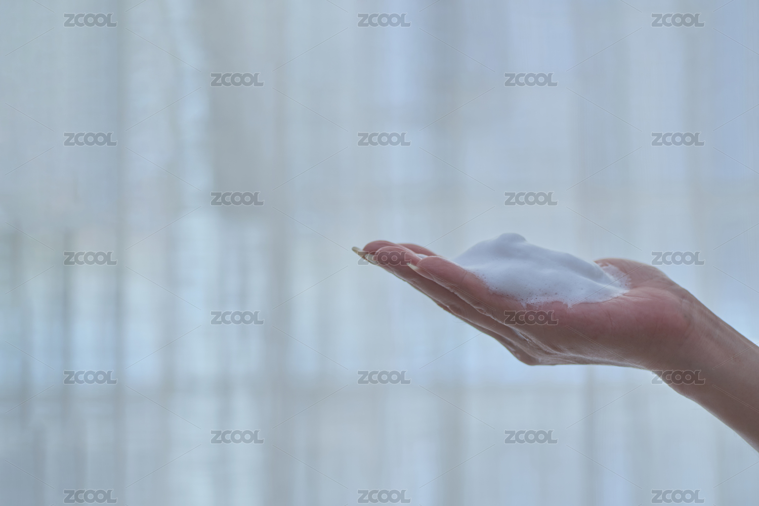 手掌中一團綿密的潔面泡沫