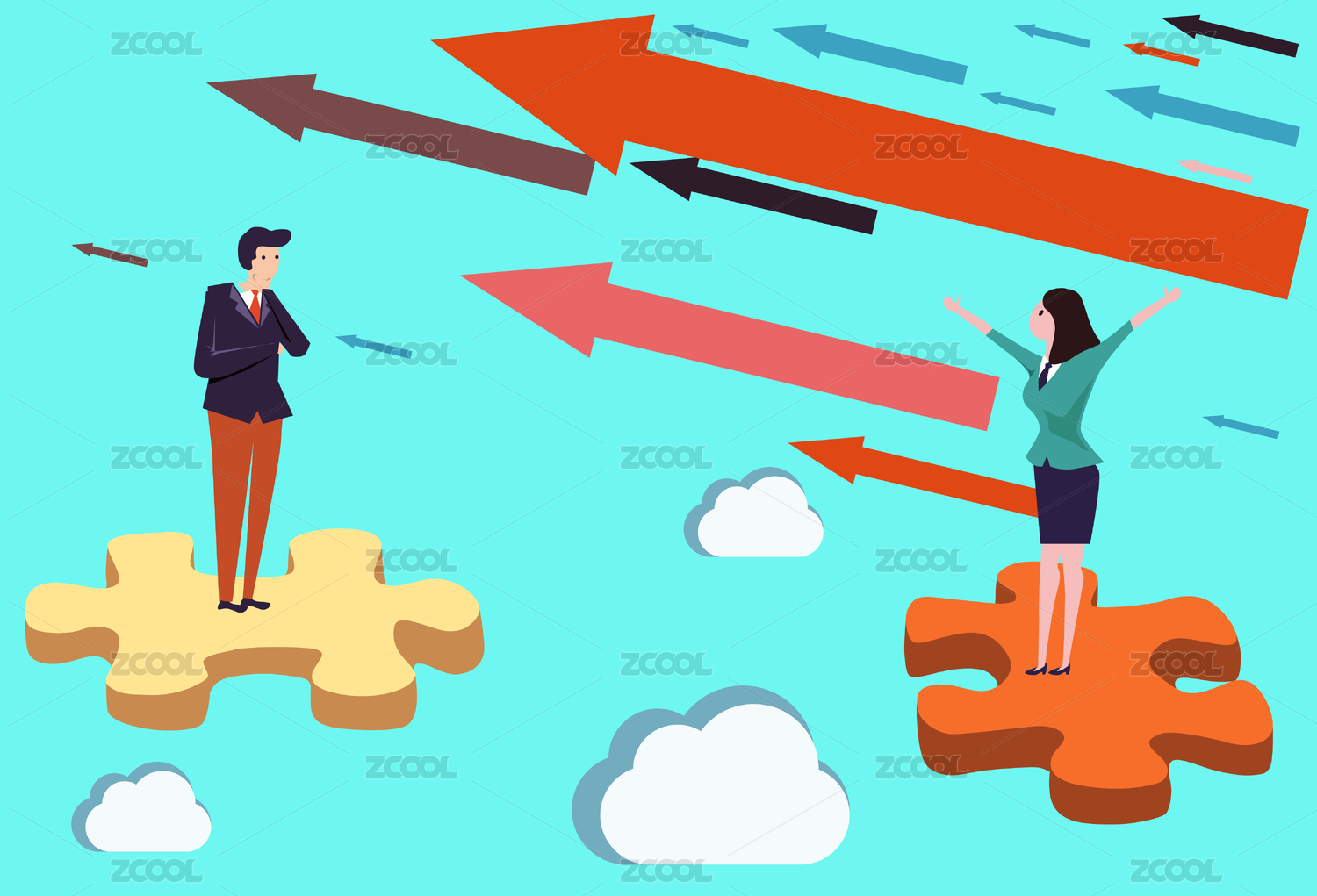 藍(lán)色背景上箭頭組合商務(wù)人士尋求對(duì)接