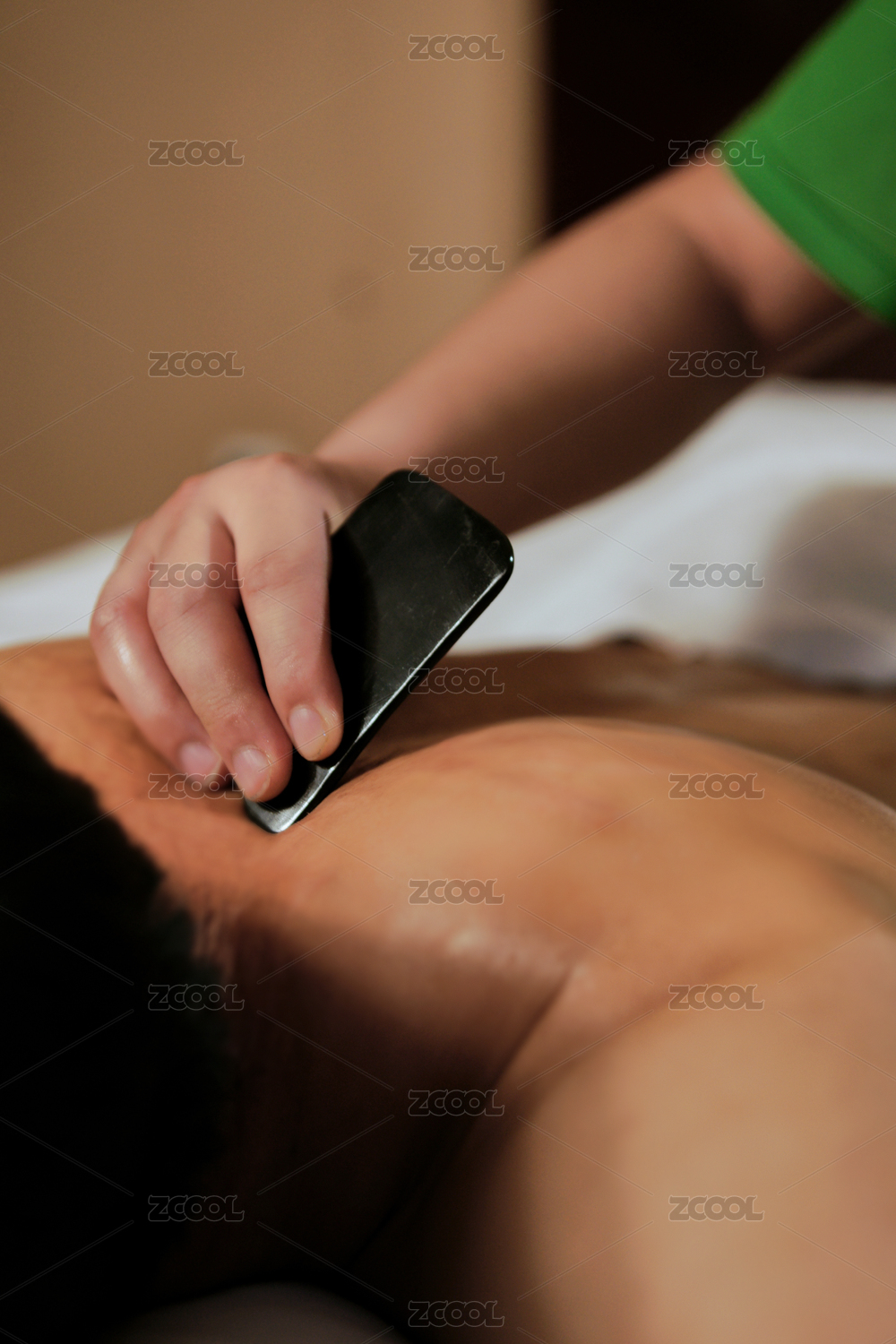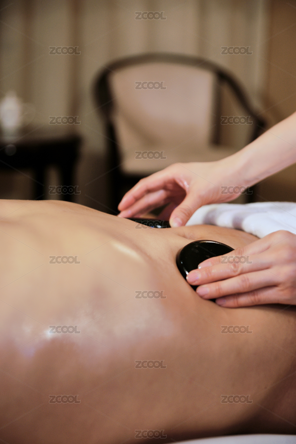 專業(yè)的按摩技師為顧客進(jìn)行玉石推拿