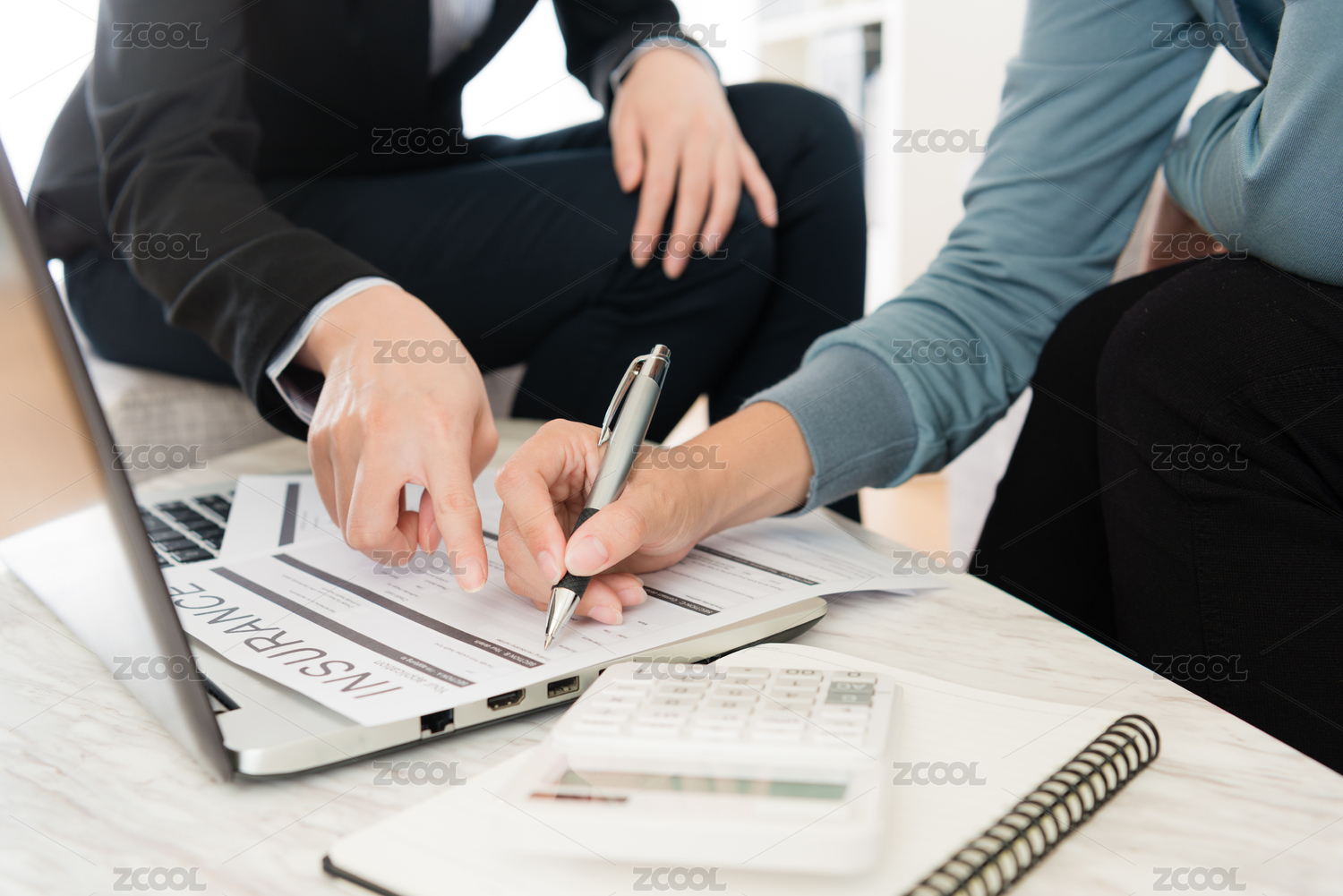 在保險單據(jù)的個人信息的女顧客填寫的特寫照片。