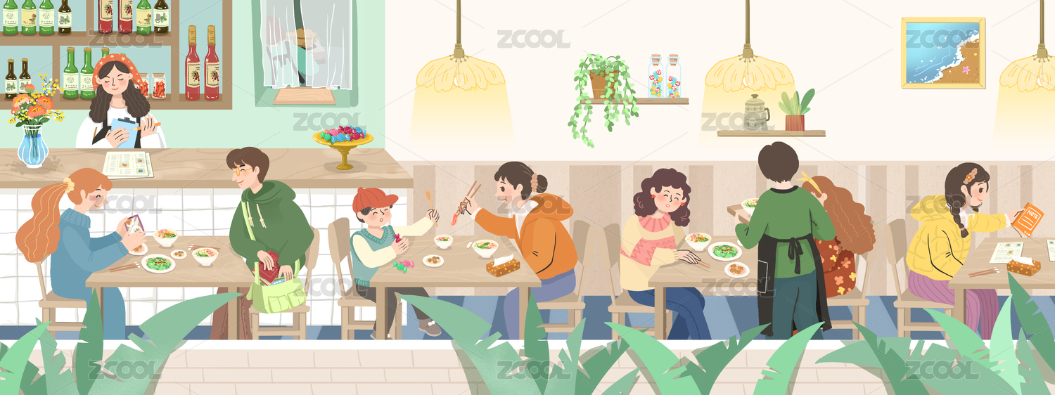 ?溫馨的餐廳內(nèi)用餐的顧客們