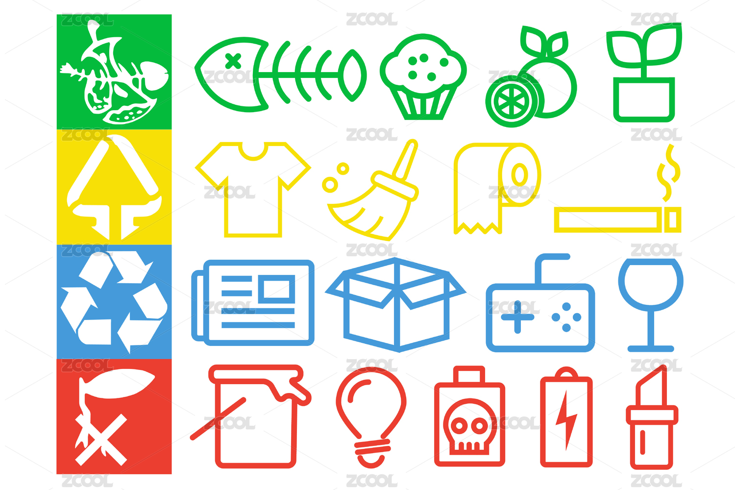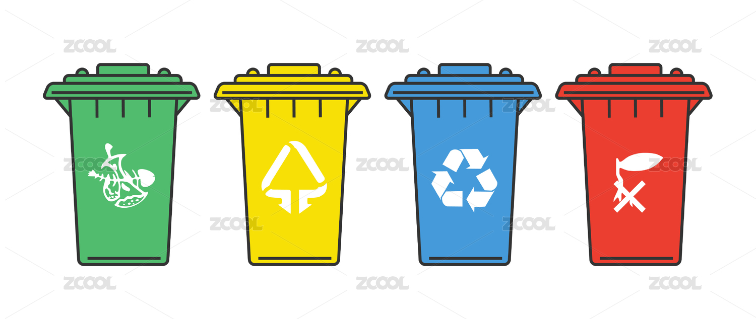 四色垃圾分類圖標(biāo)及不同垃圾分列舉例