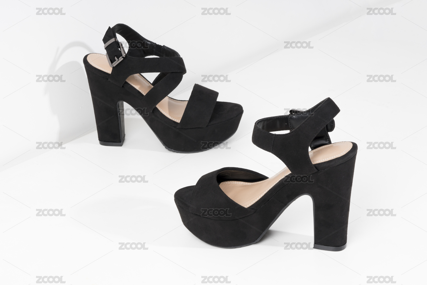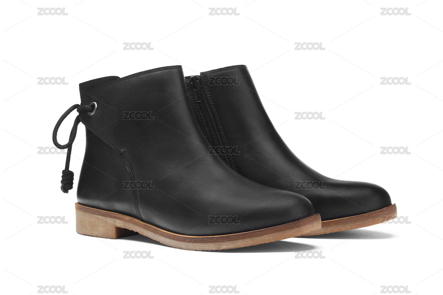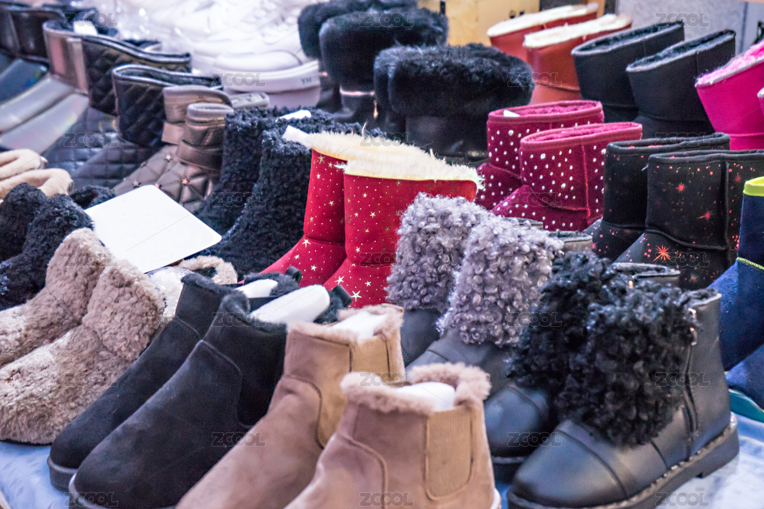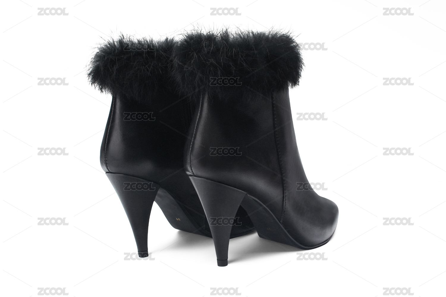 白色背景時尚 黑色女鞋 冬天毛毛鞋