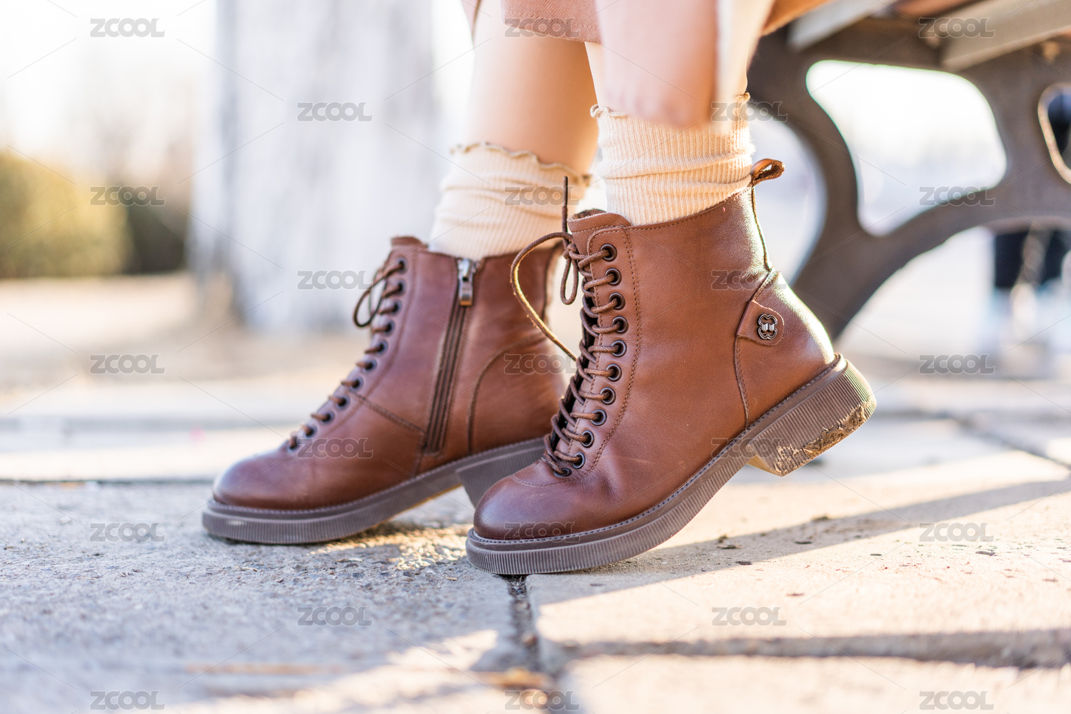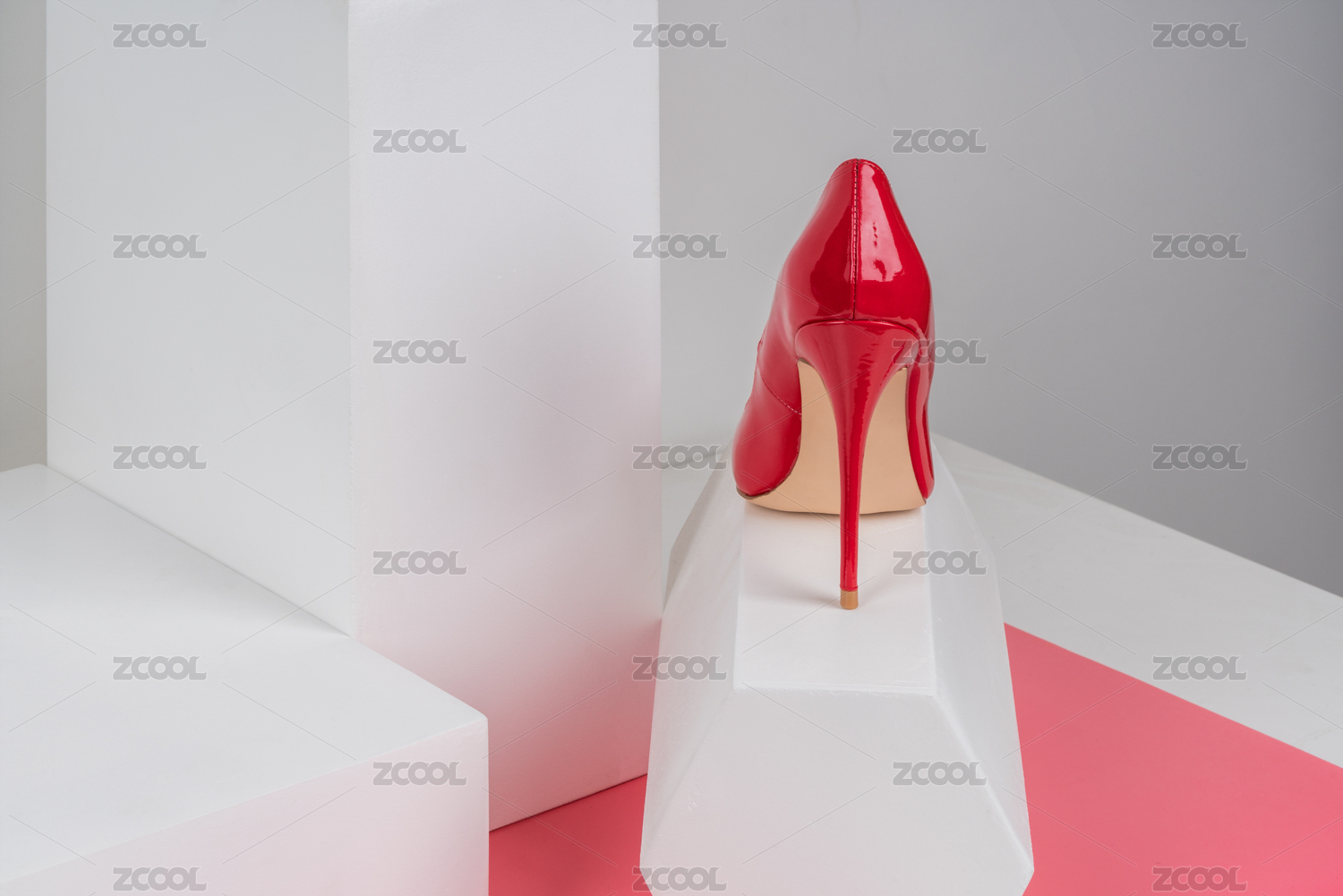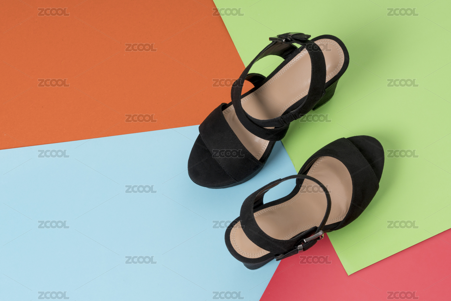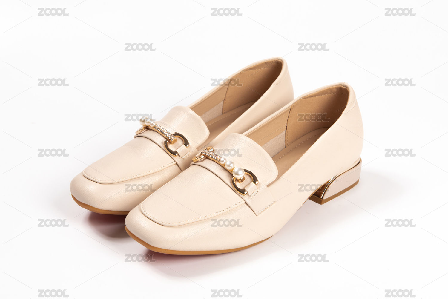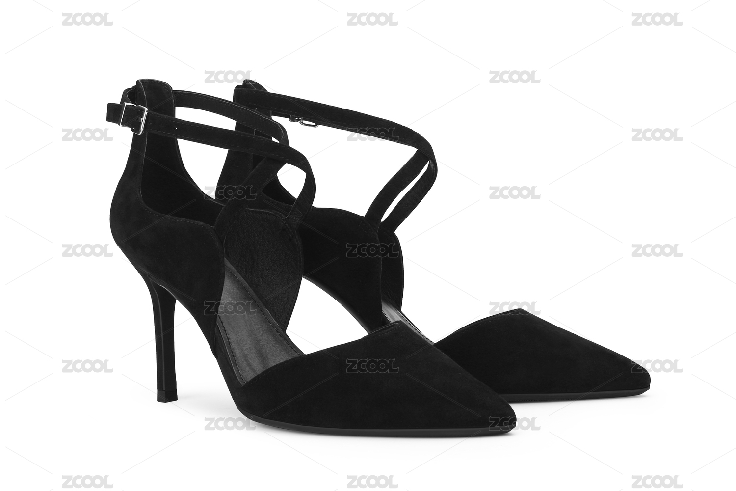 白色背景時尚 黑色女鞋 冬天毛毛鞋