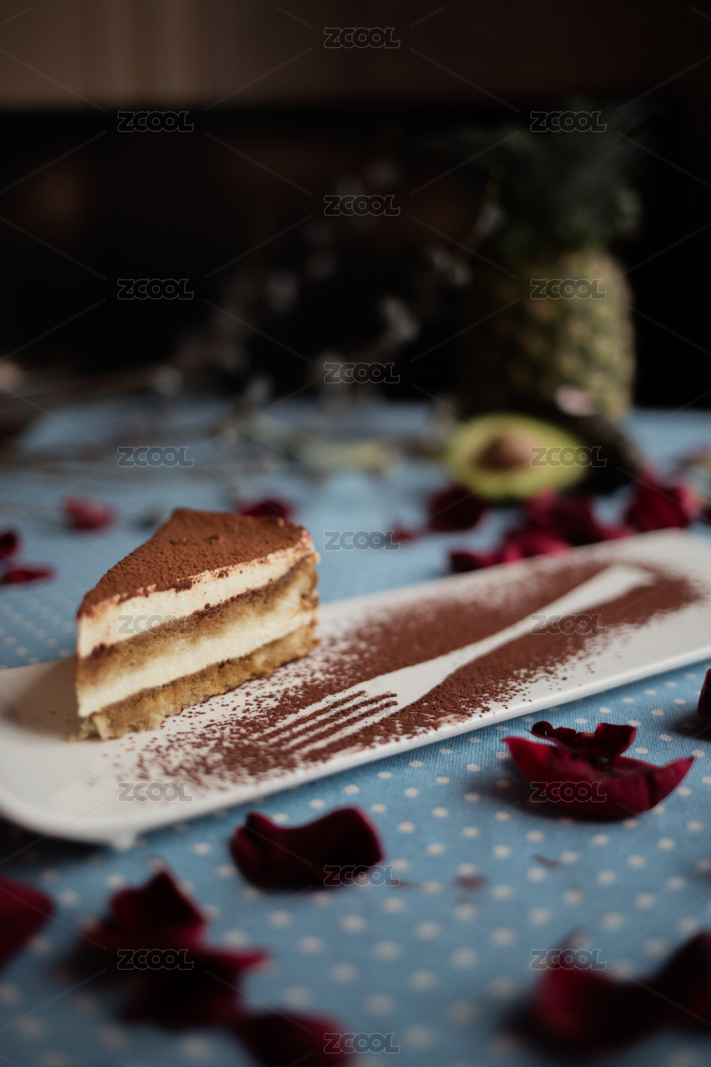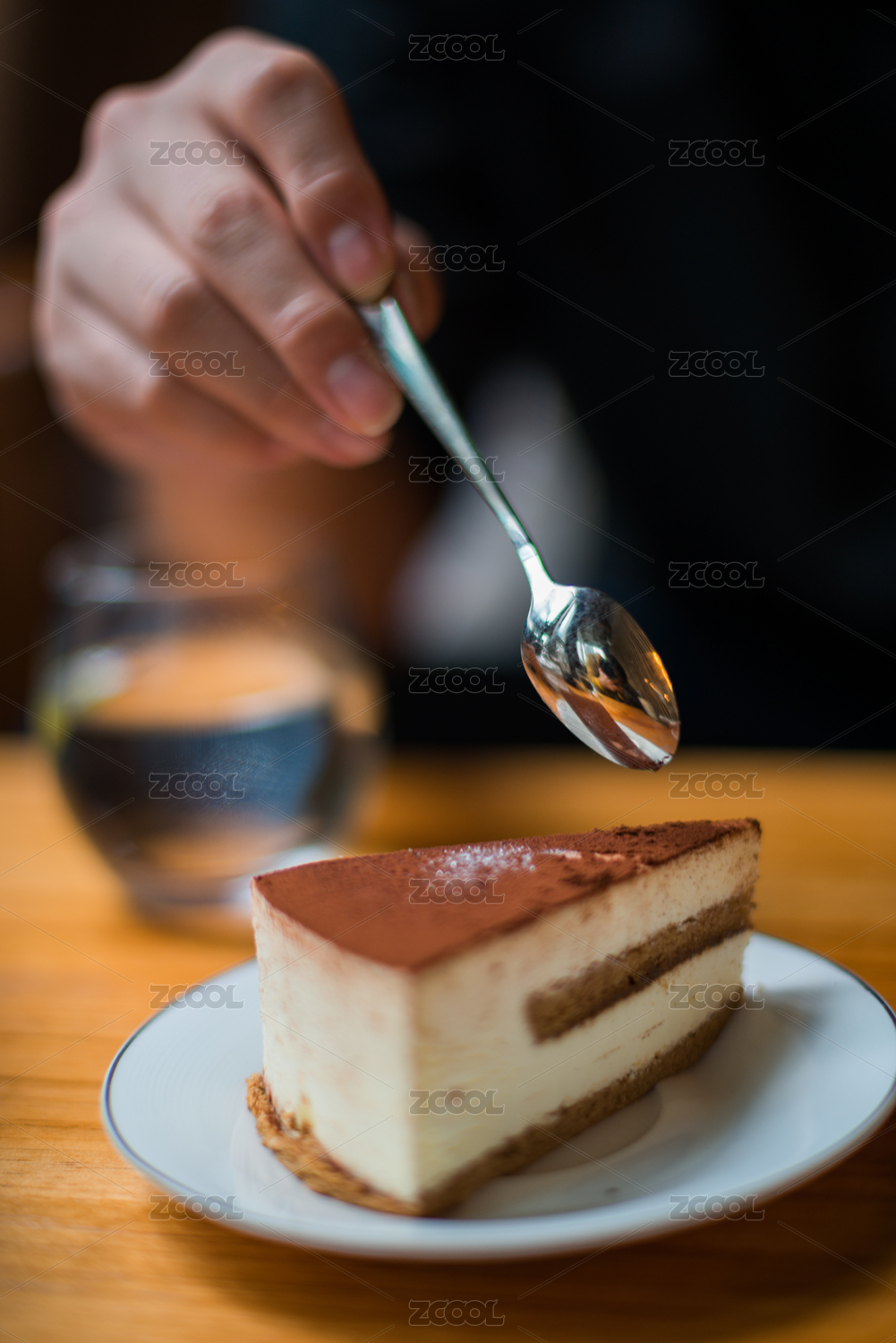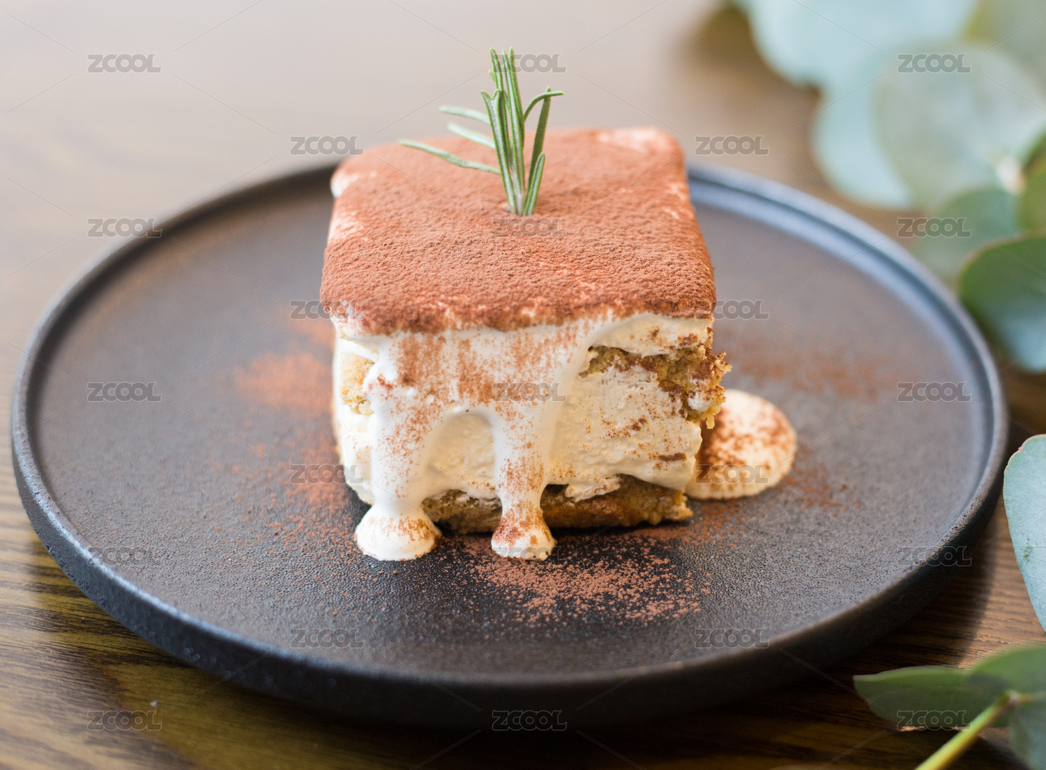 木紋桌上有一塊提拉米蘇