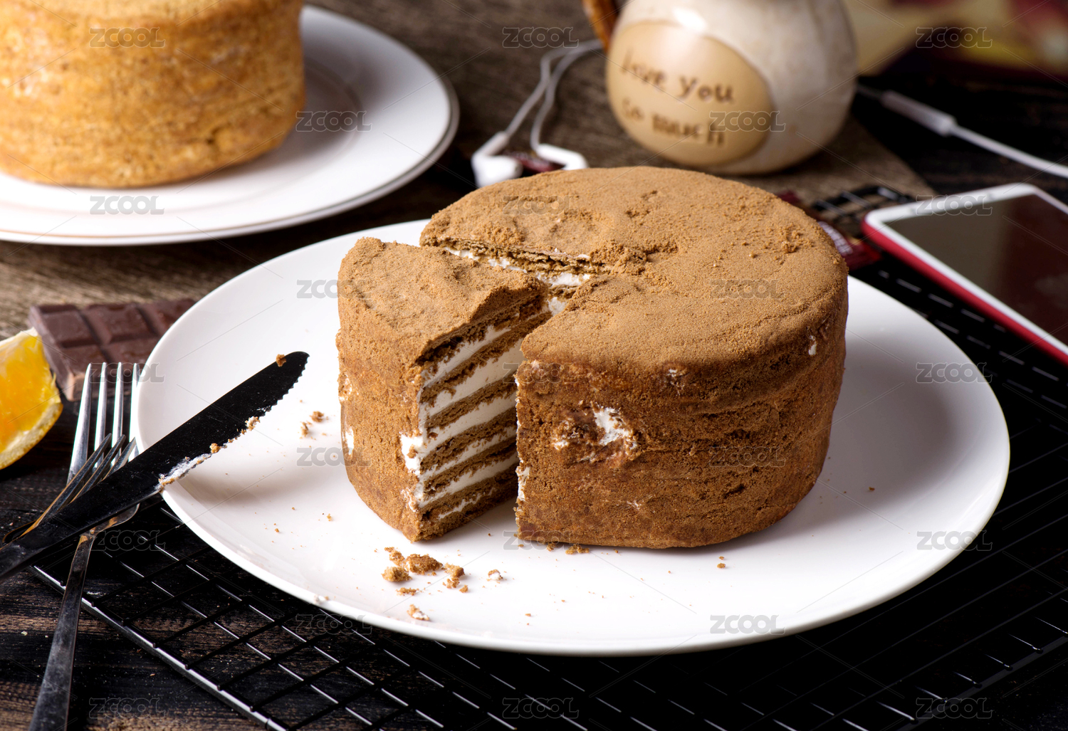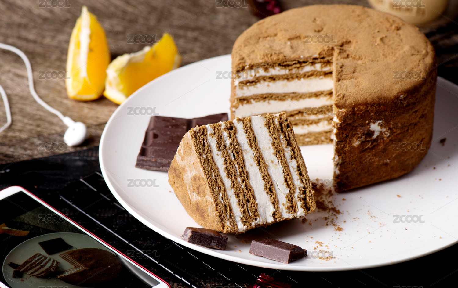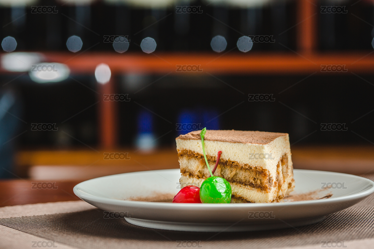 木紋桌上有一塊提拉米蘇