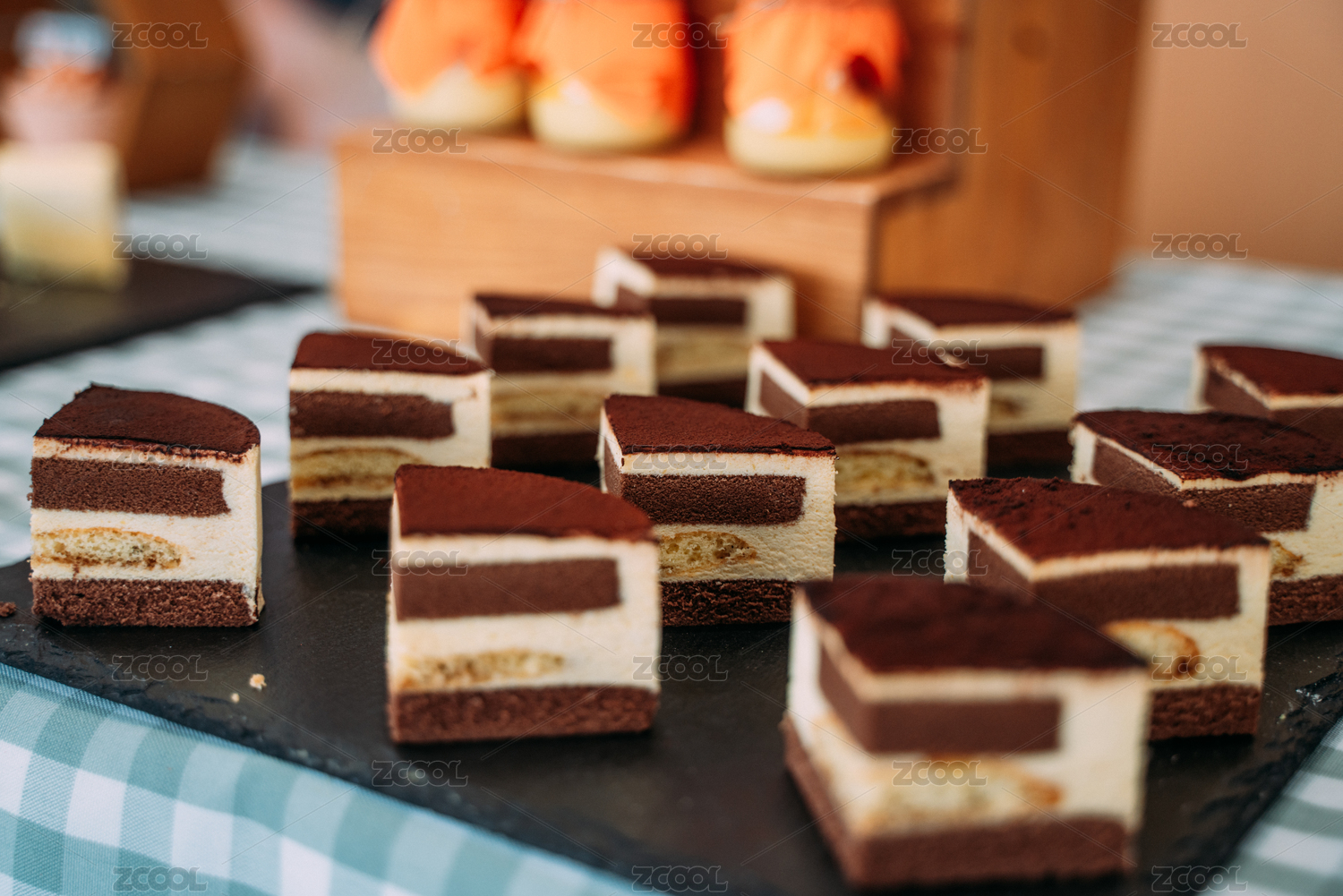 方形提拉米蘇蛋糕特寫
