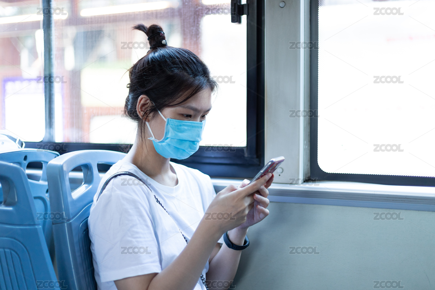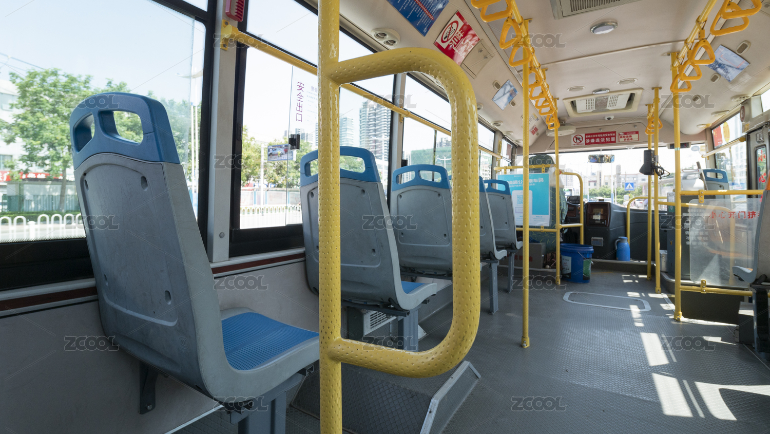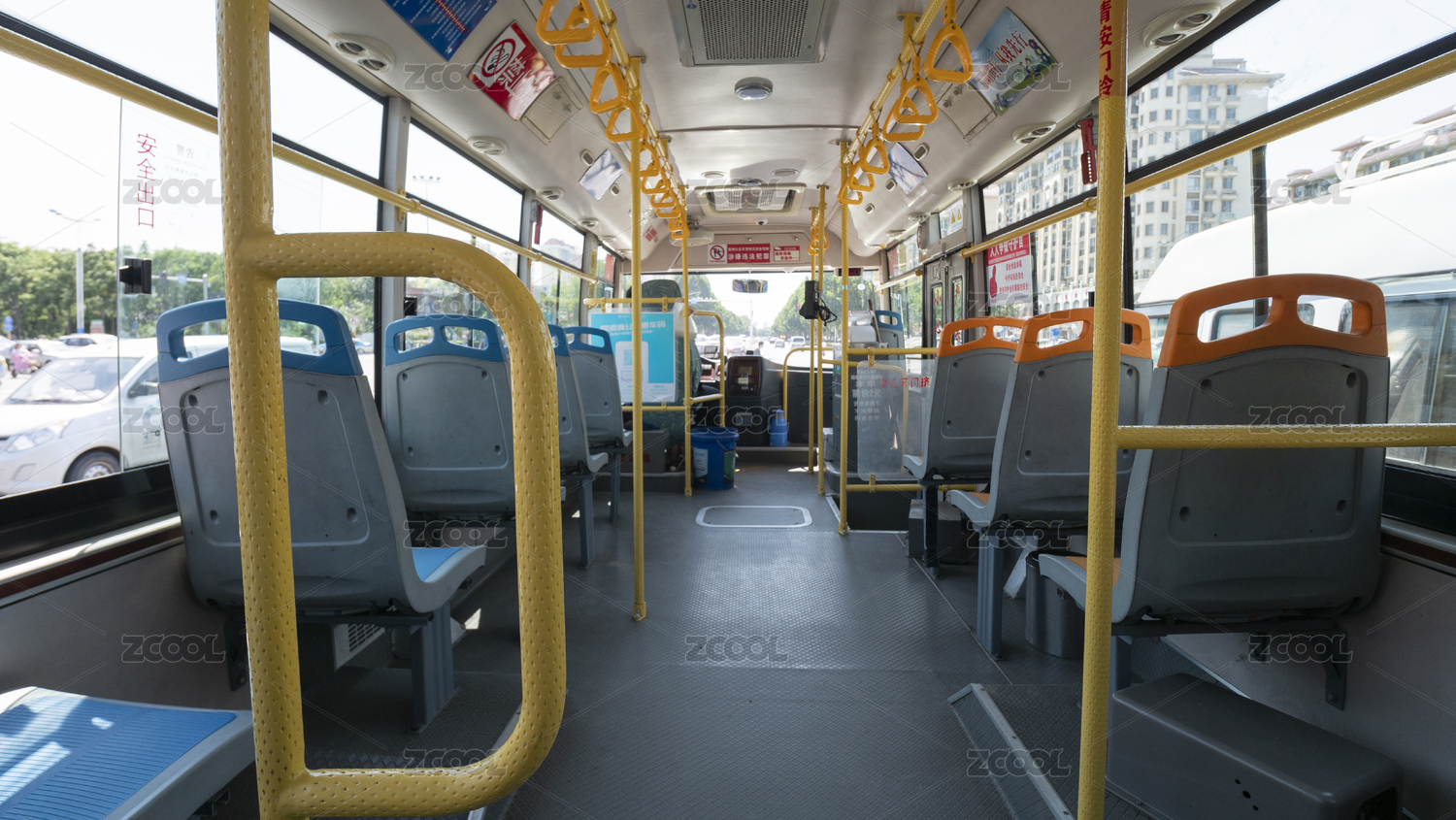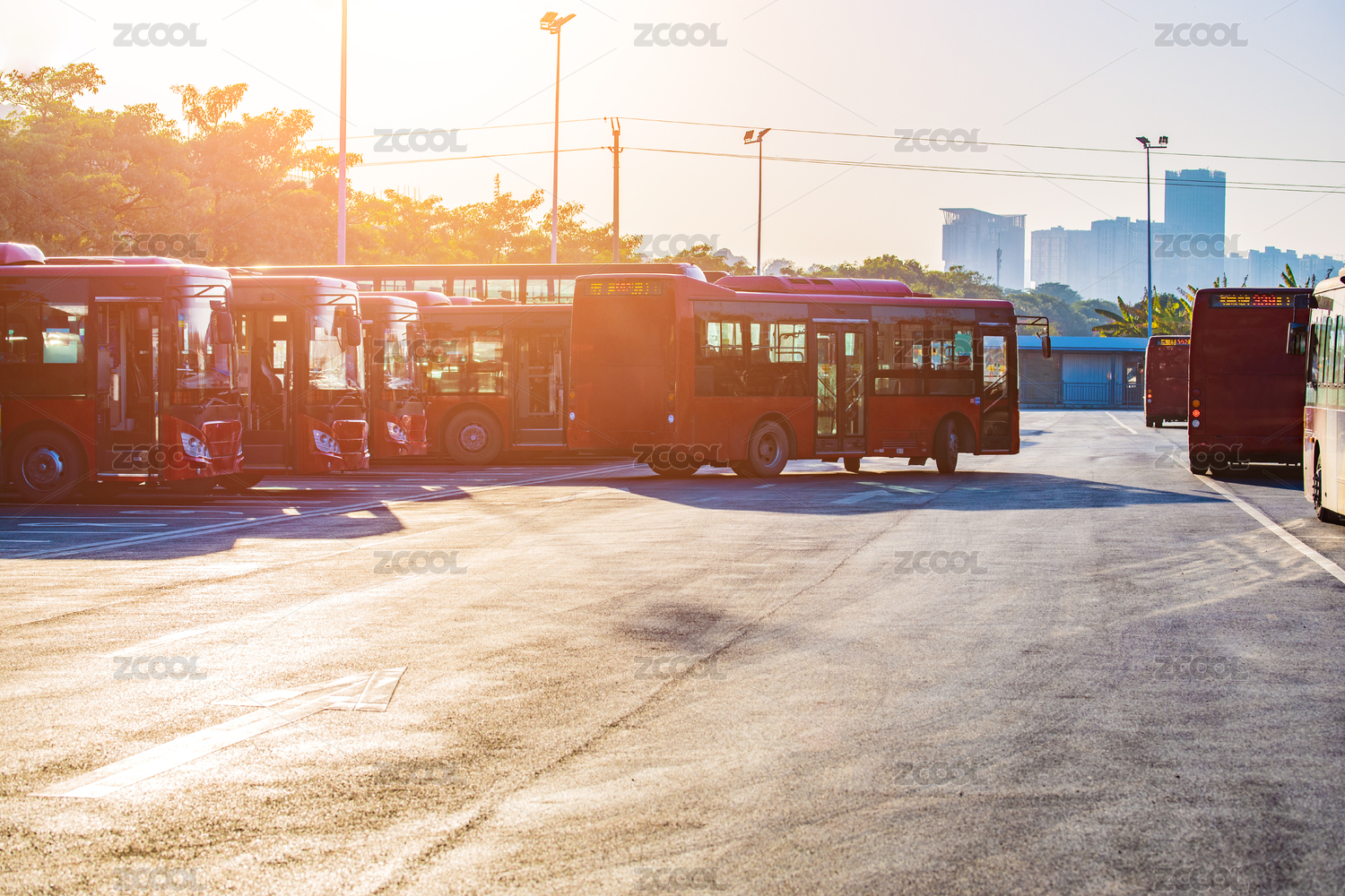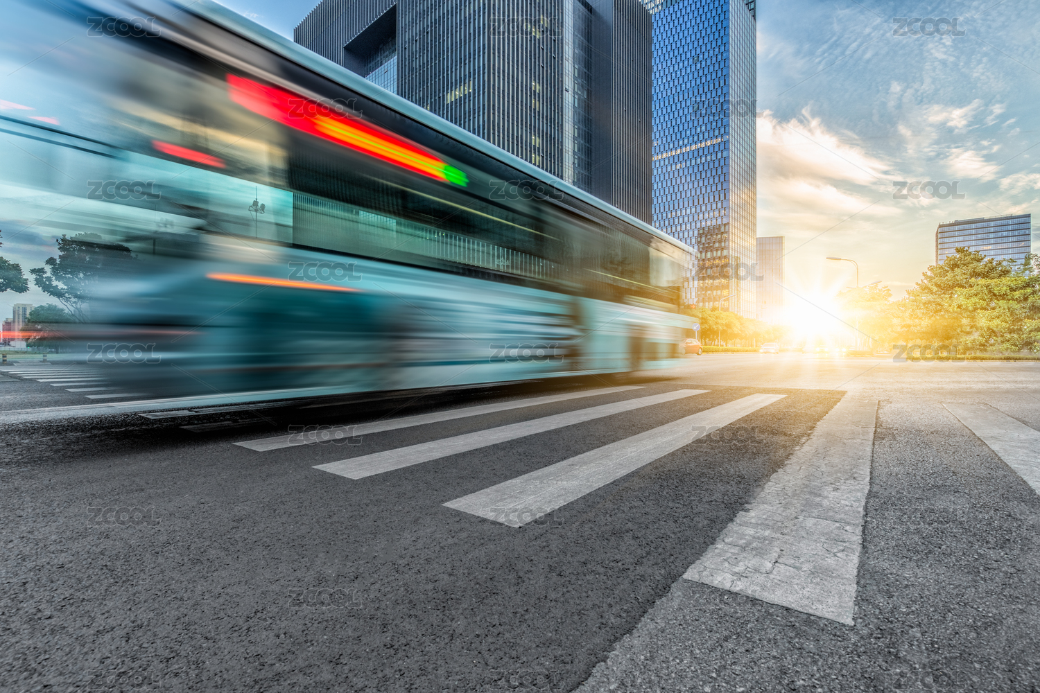公共汽車在傍晚的街道上疾馳而過(guò)