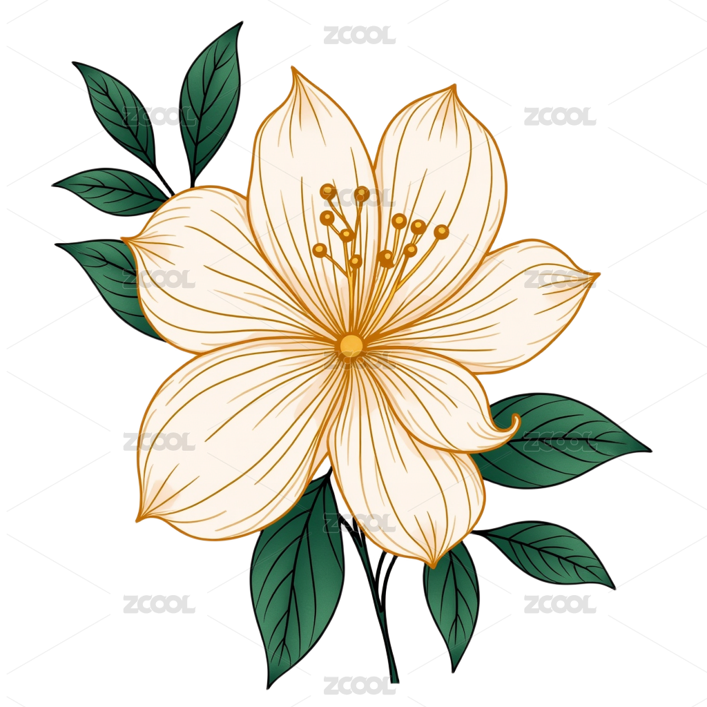 母親節(jié)主題線條藝術花卉和綠葉PNG免摳素材