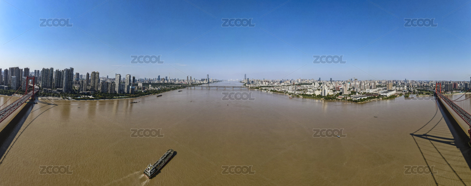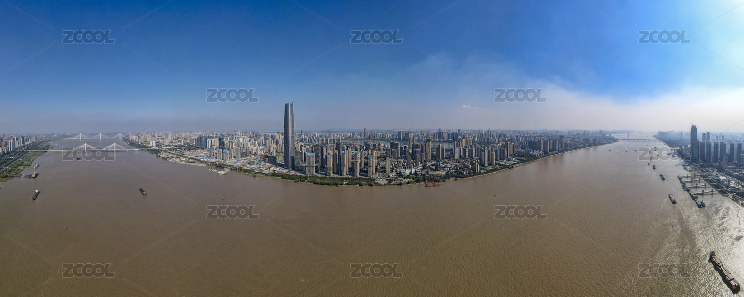 中國湖北武漢城市長江風(fēng)光全景圖航拍