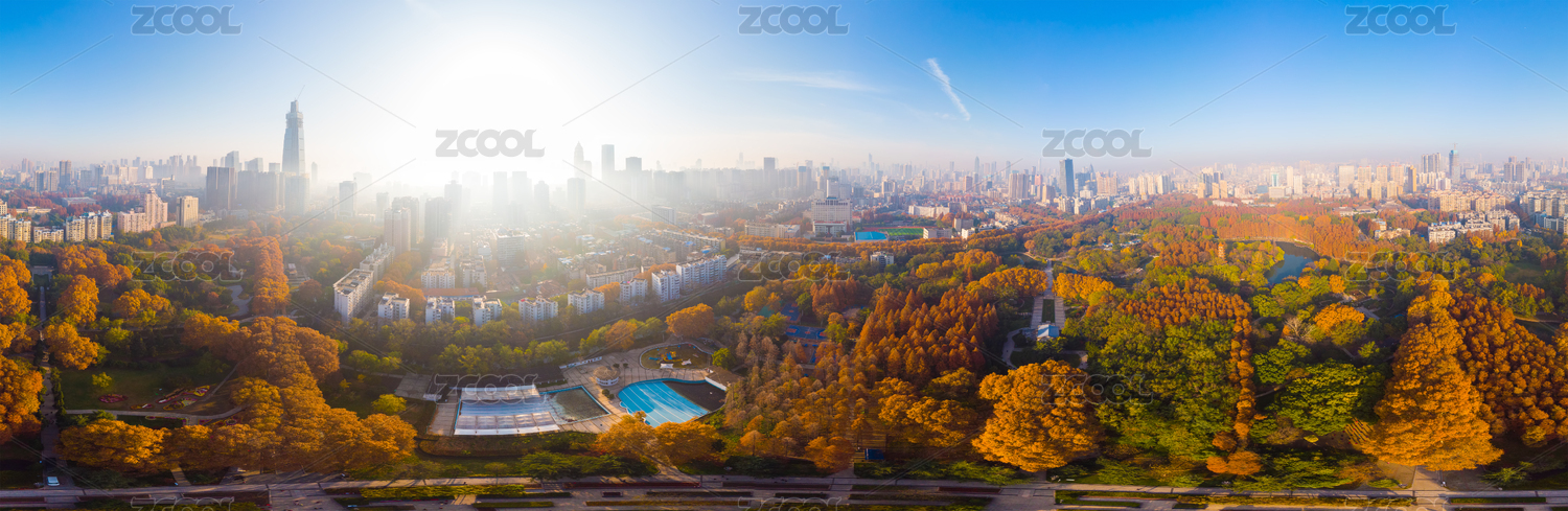 湖北武漢解放公園景區(qū)深秋航拍風(fēng)光