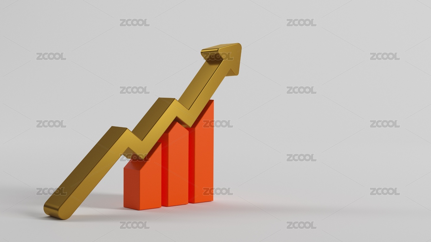 3d渲染的紅色向上的經(jīng)濟(jì)走向圖和柱狀圖