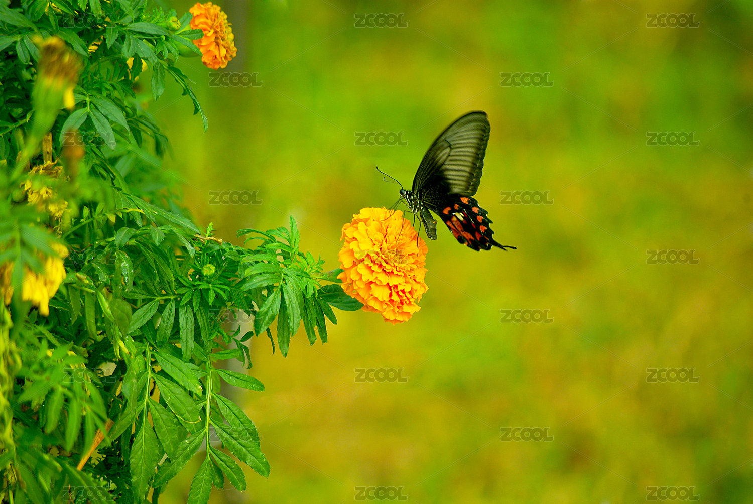 秋日公園里的萬壽菊和蝴蝶