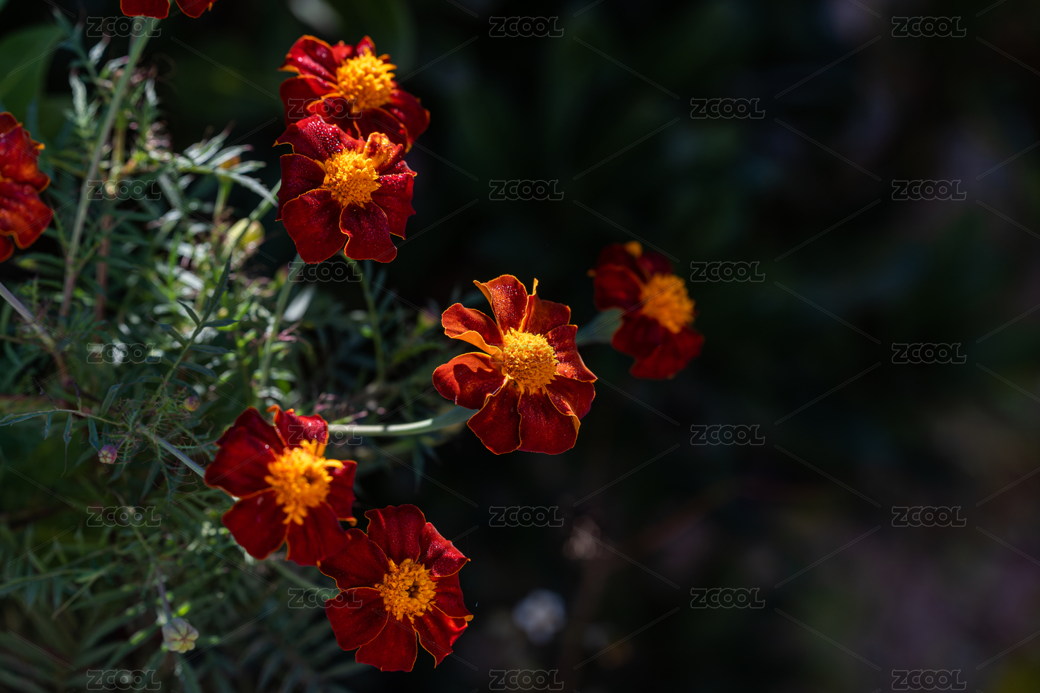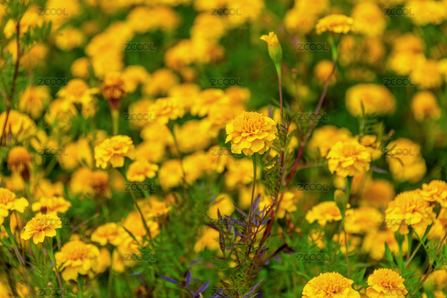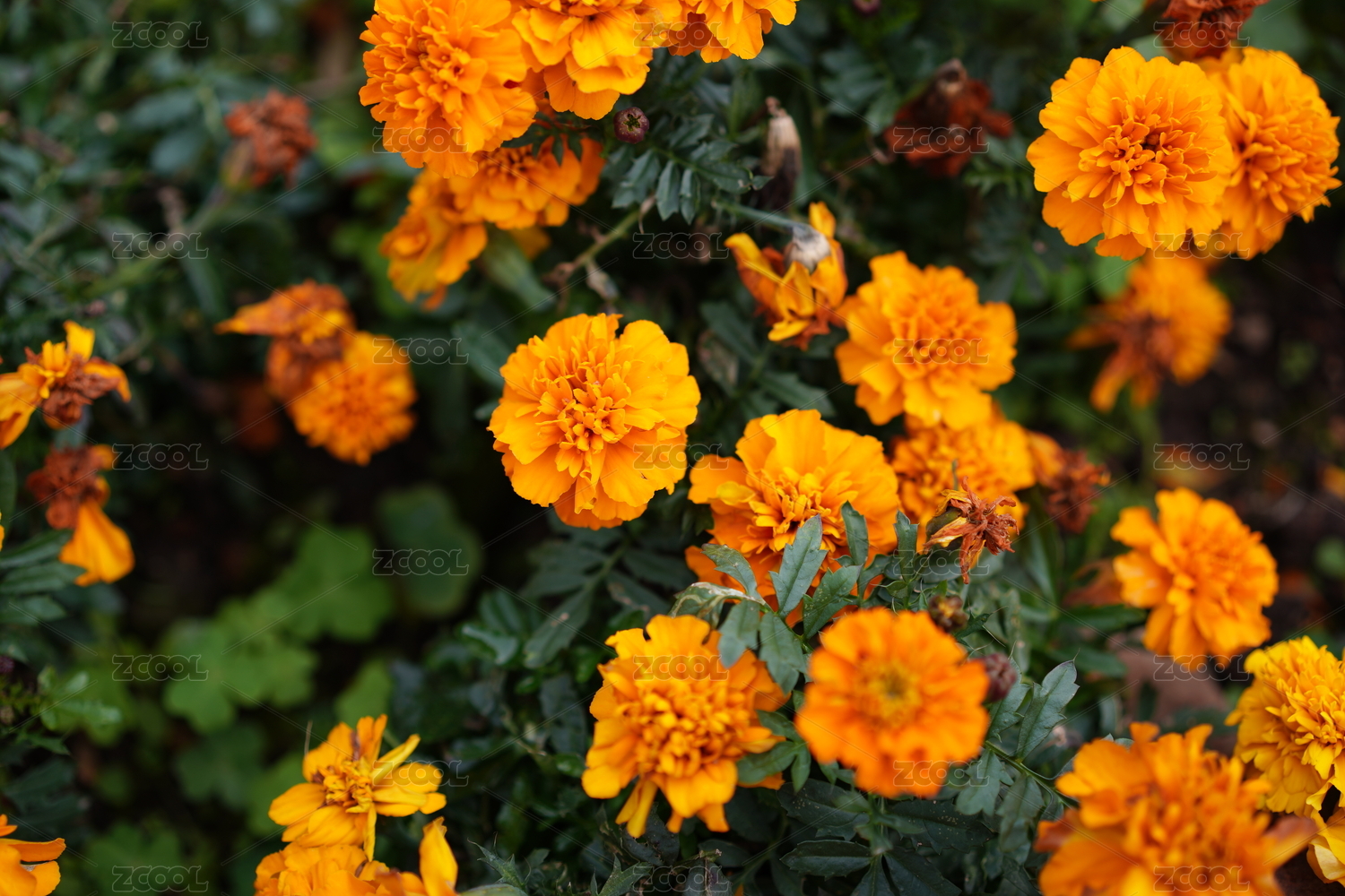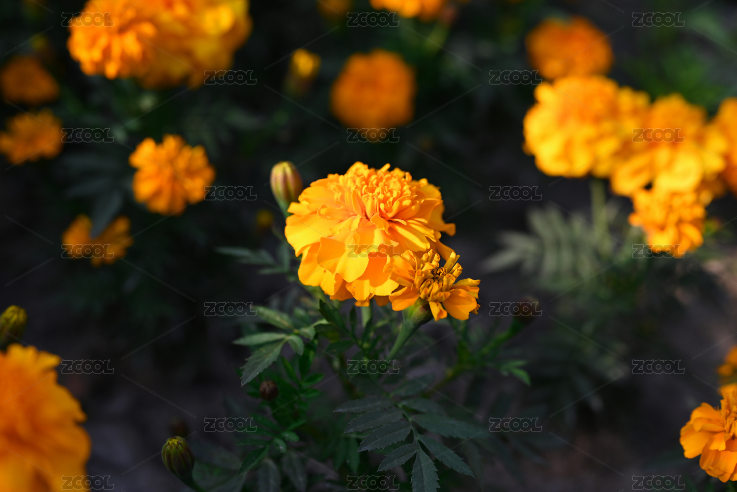 高視角拍攝萬壽菊花叢