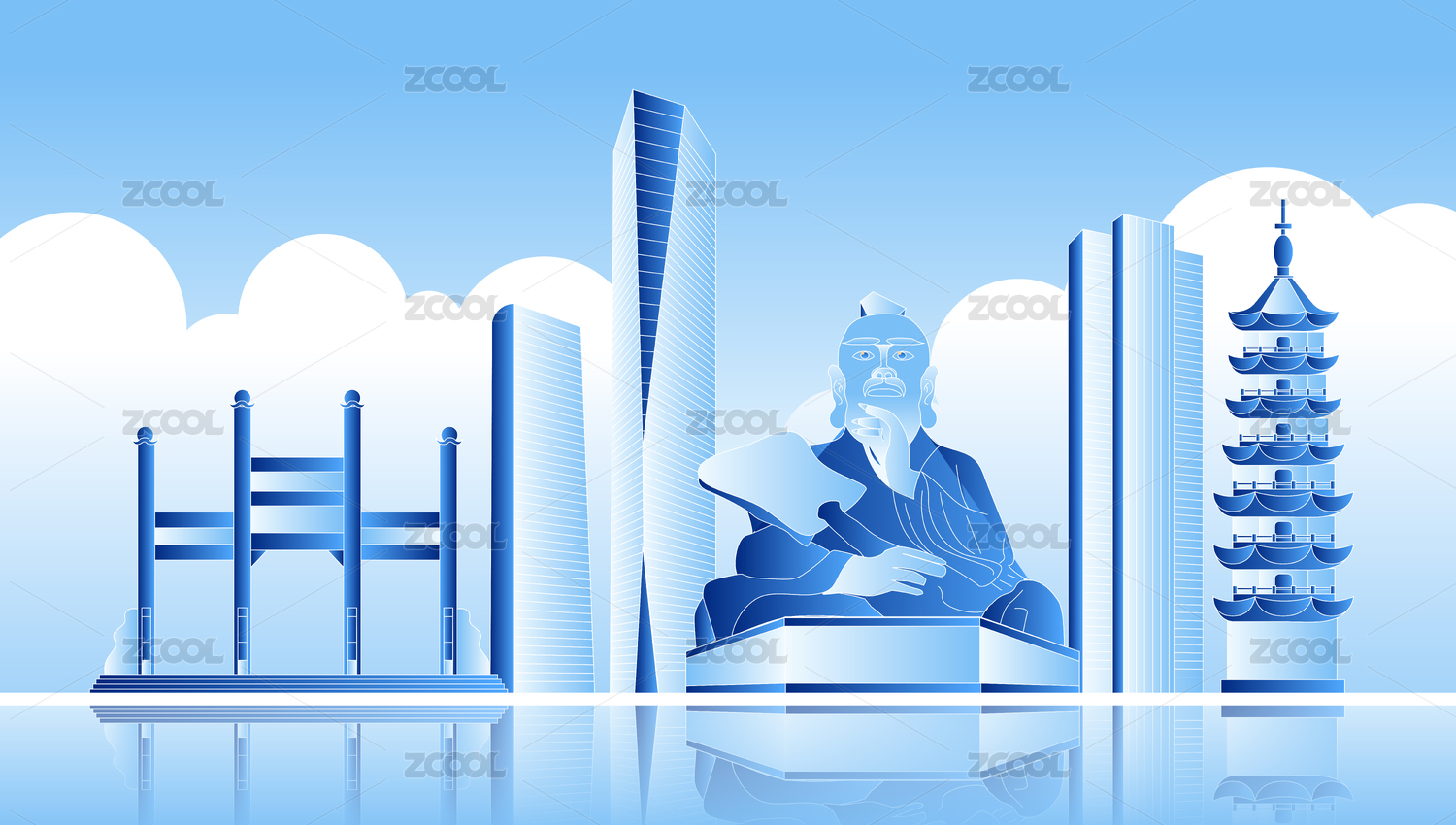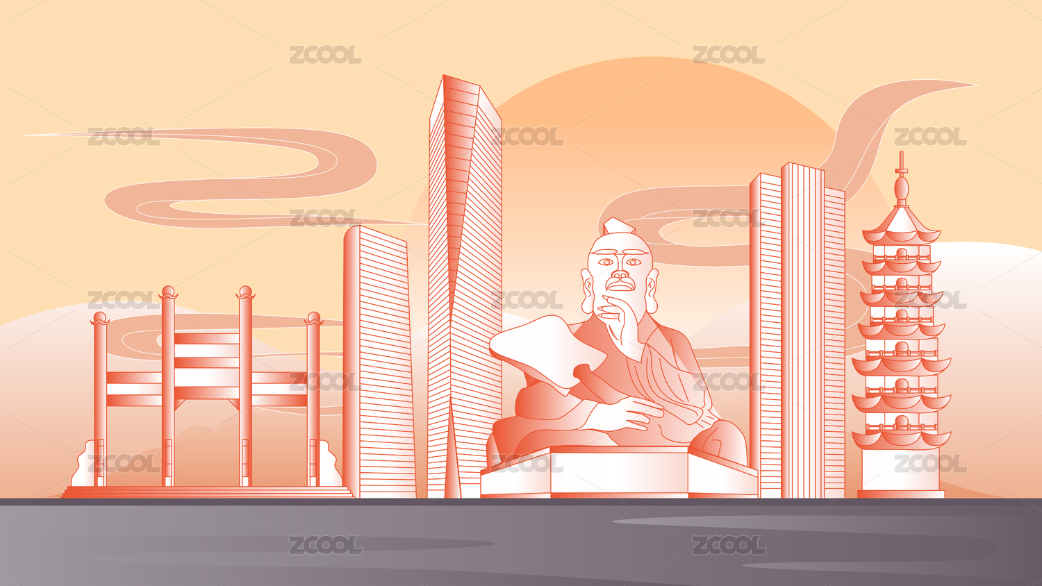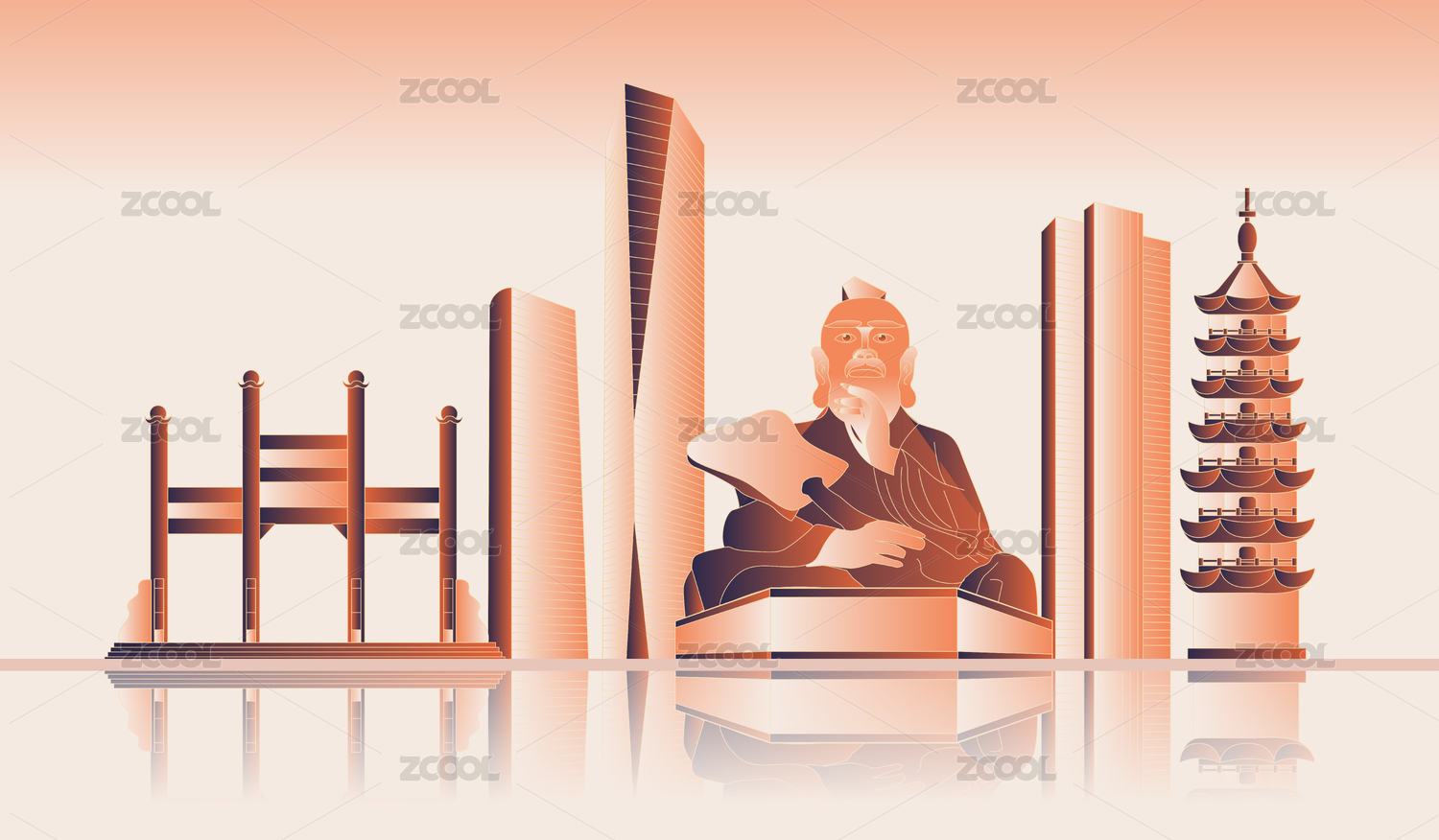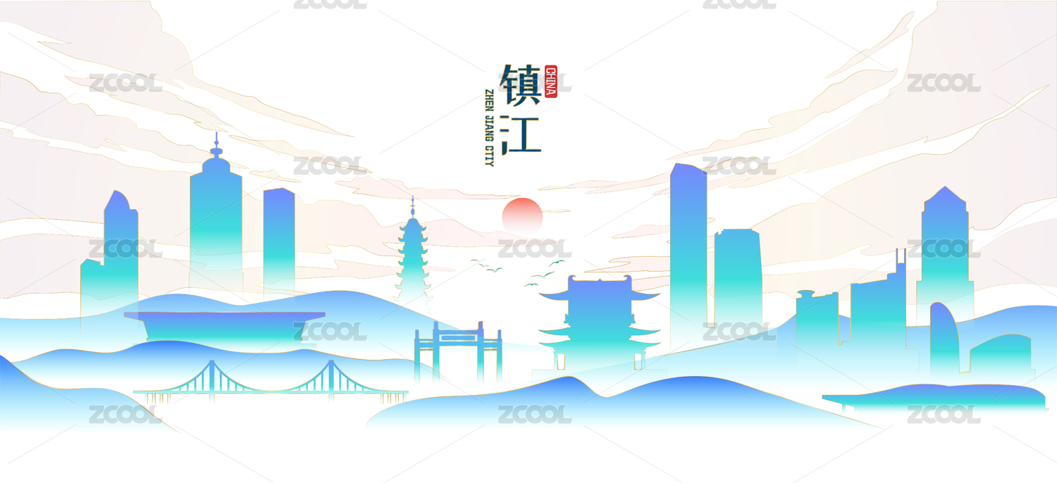 鎮(zhèn)江城市地標建筑國潮風矢量手繪