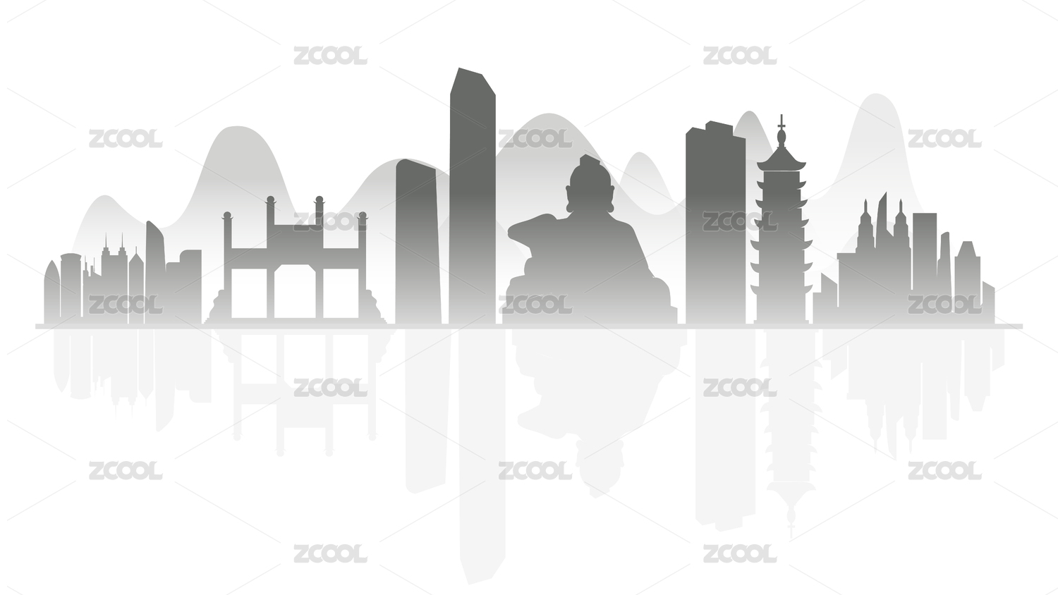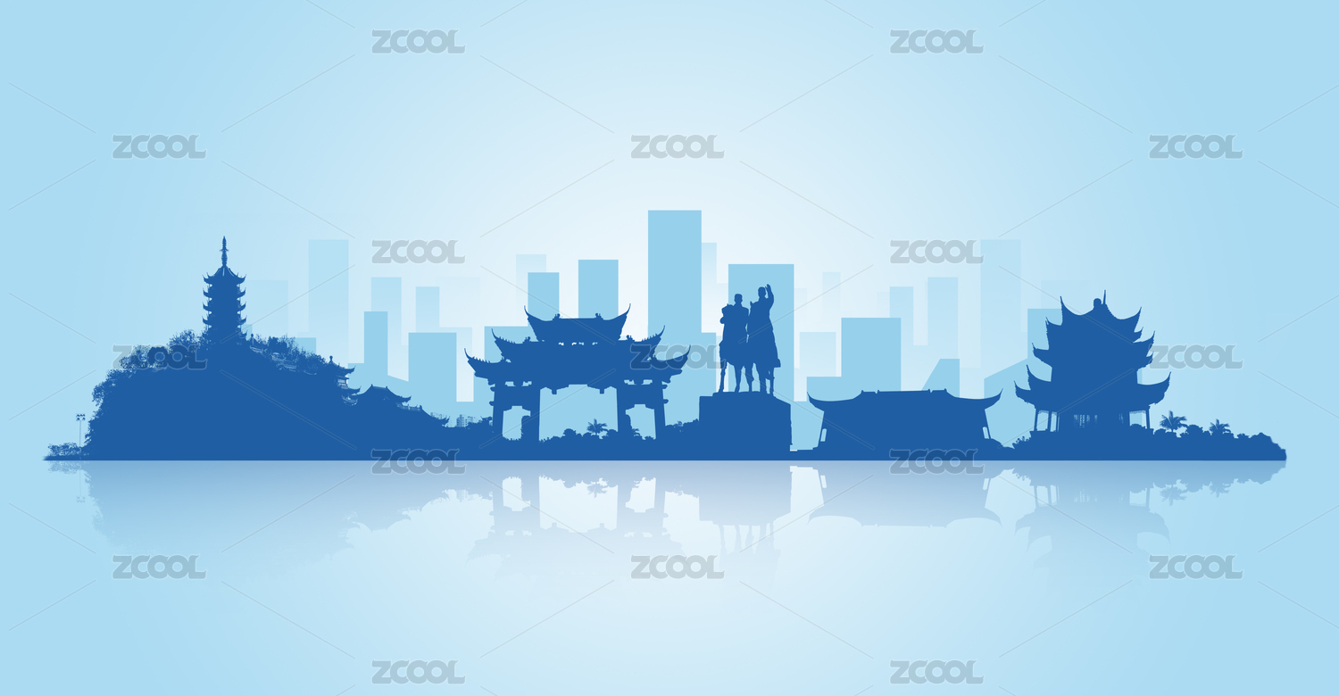 鎮(zhèn)江城市手繪建筑剪影