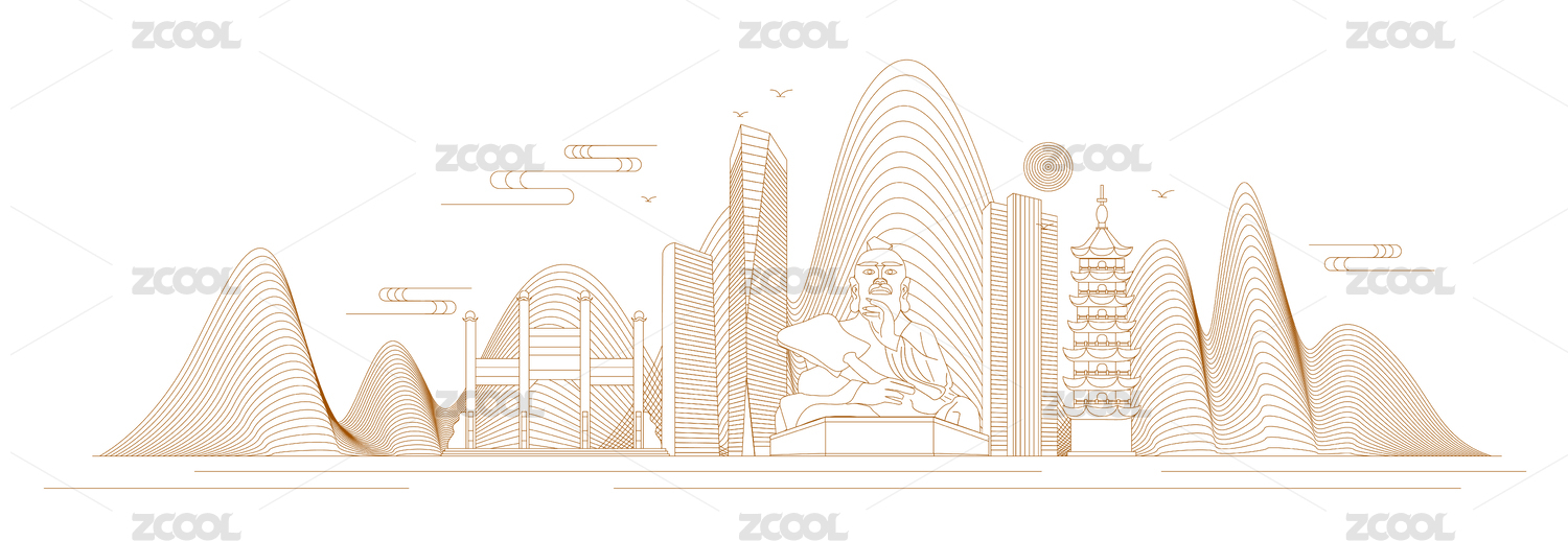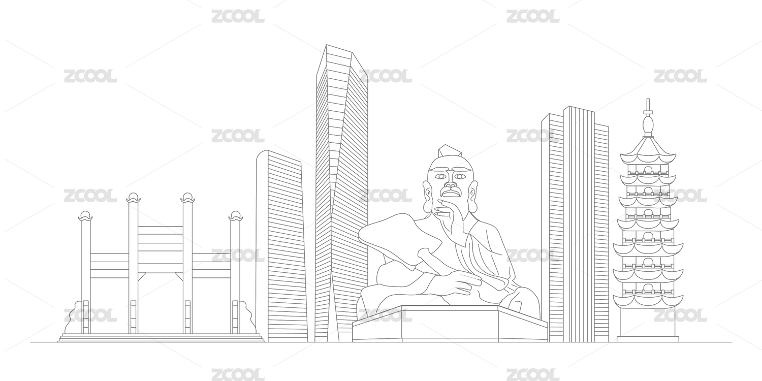 鎮(zhèn)江標志建筑描邊插畫