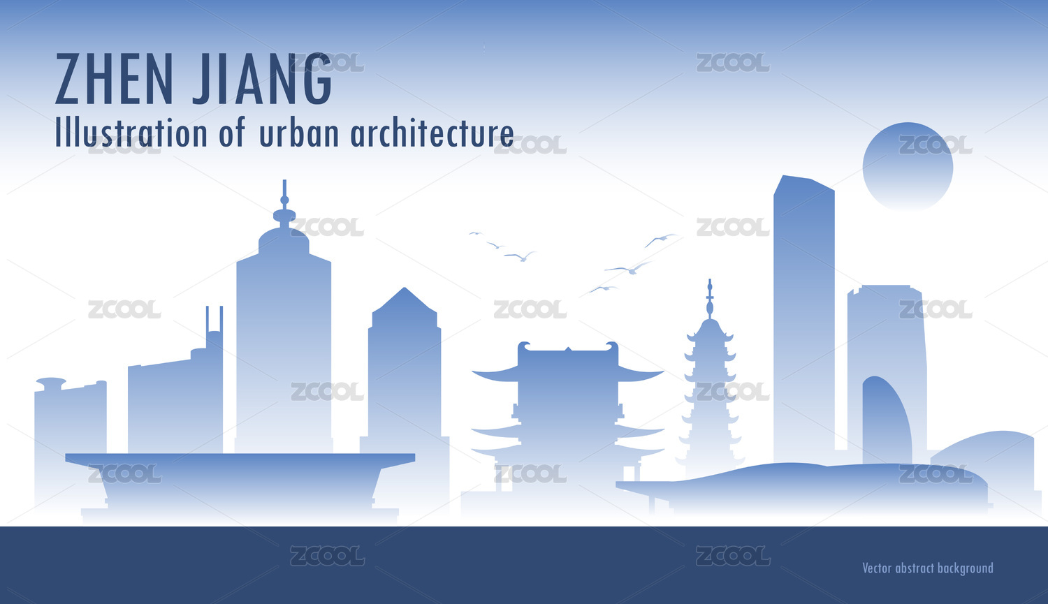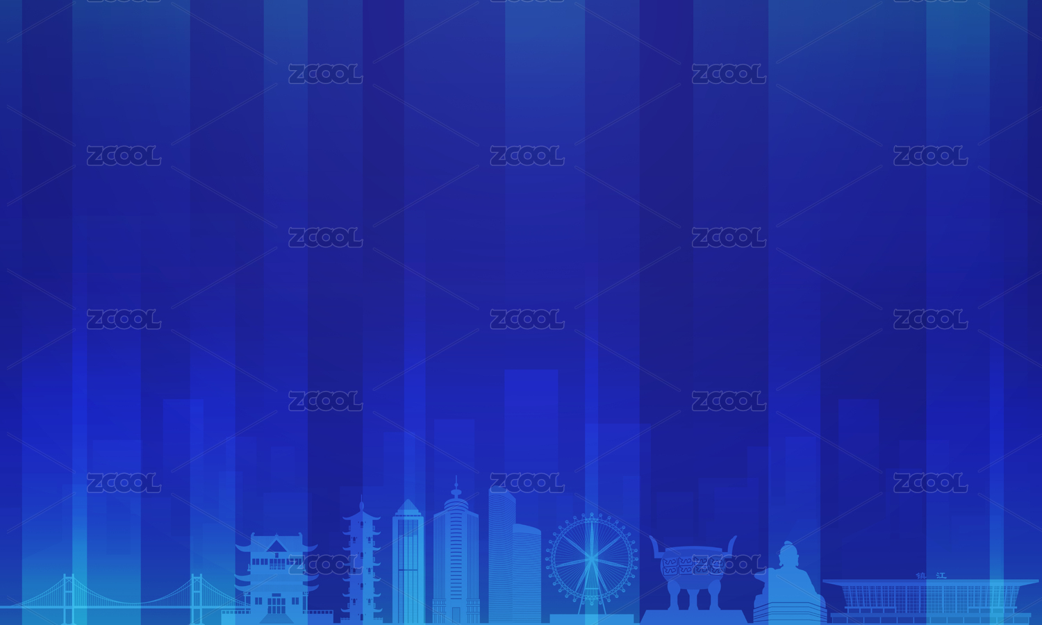 藍色鎮(zhèn)江城市標志建筑矢量插畫