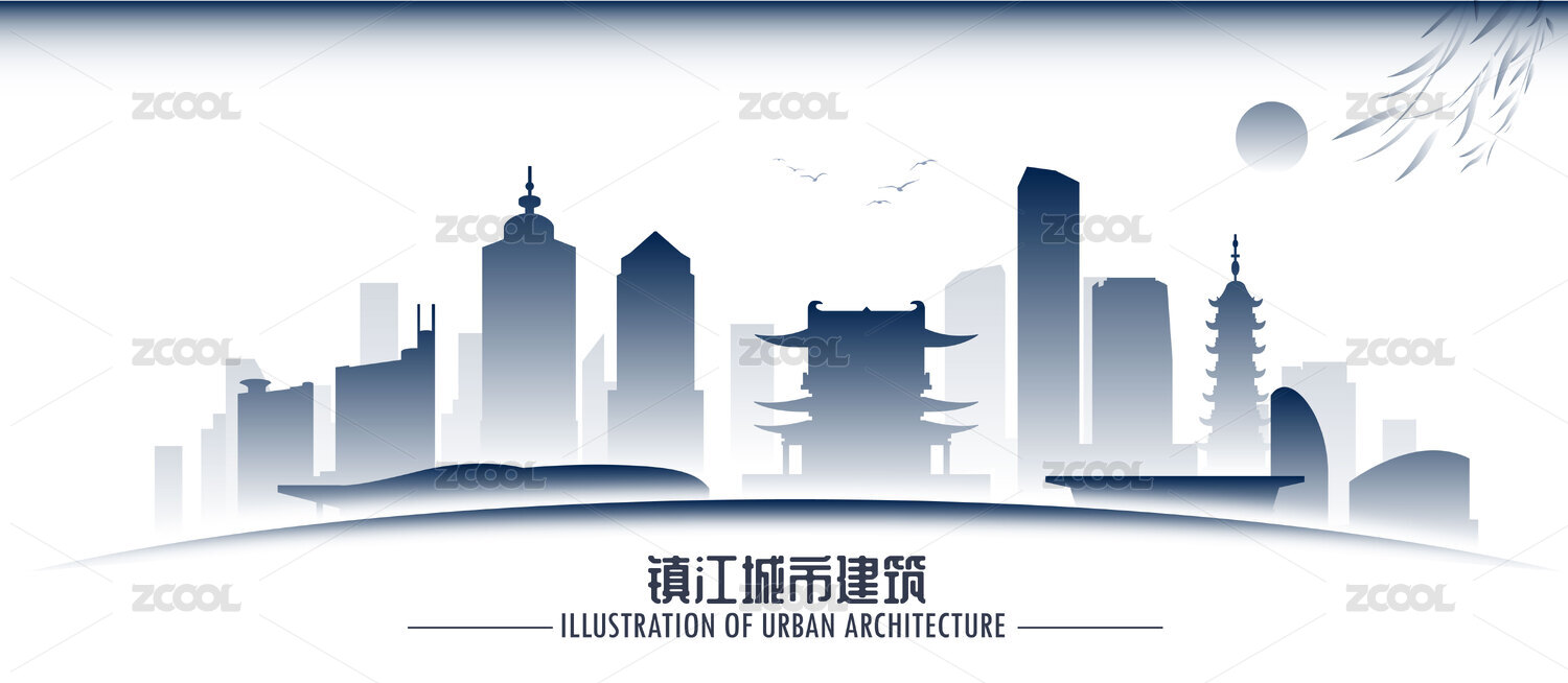 鎮(zhèn)江水墨剪影插畫