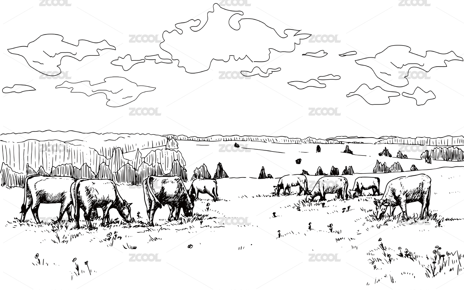 平原牧場牛群肉牛安格斯牛和牛田園牧歌