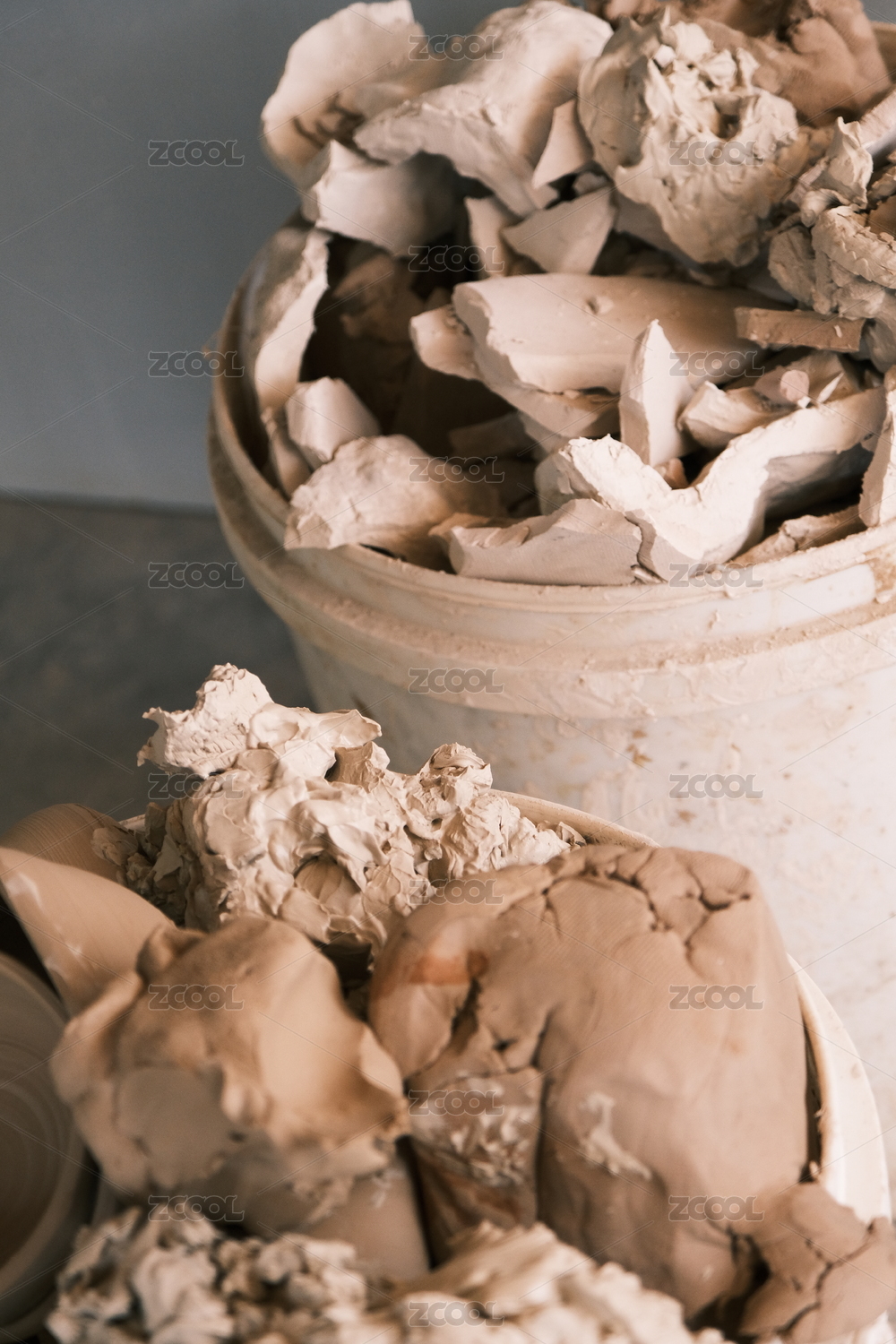 一堆陶瓷粘土原料特寫