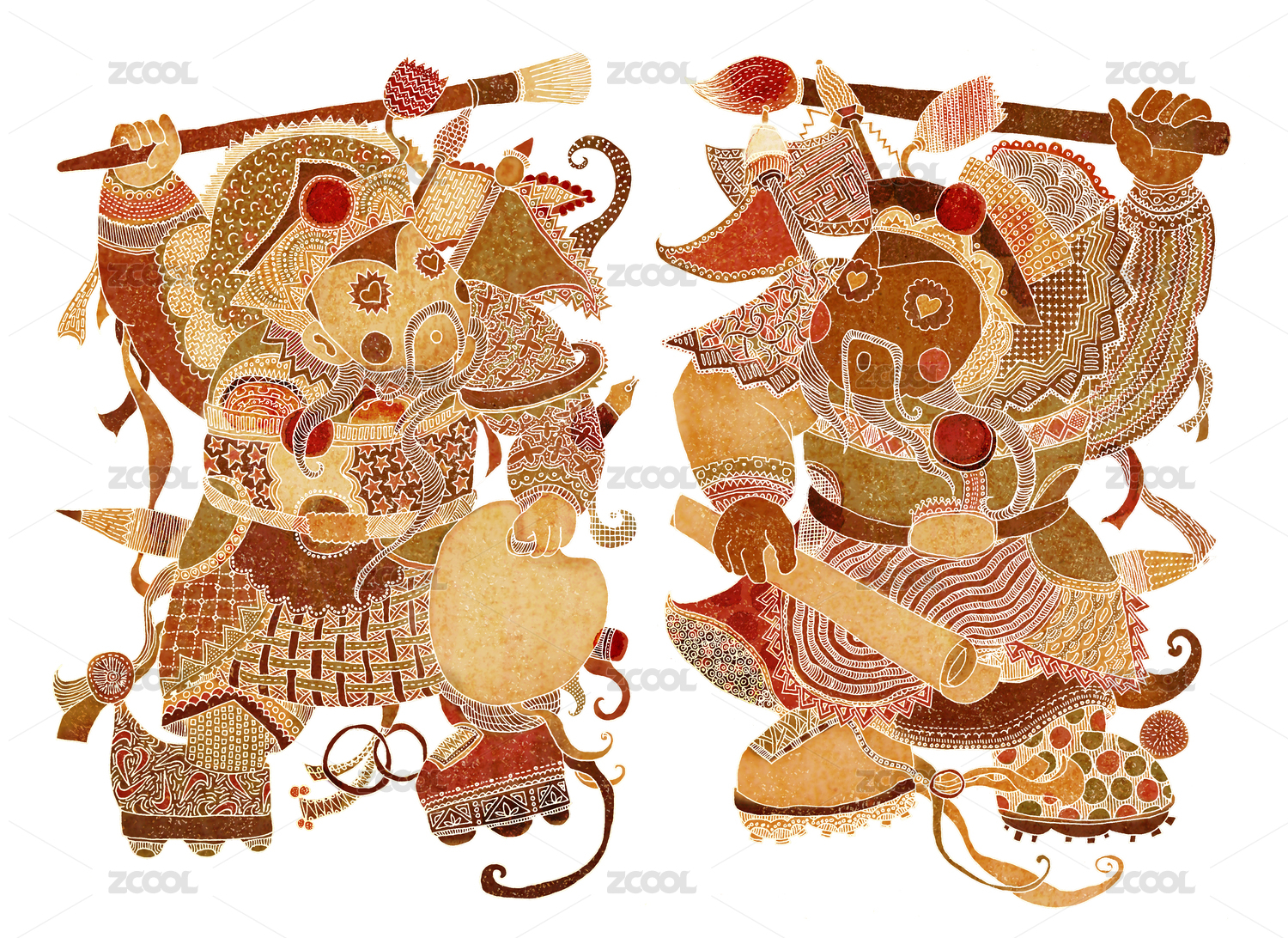 唐山皮影非遺插畫