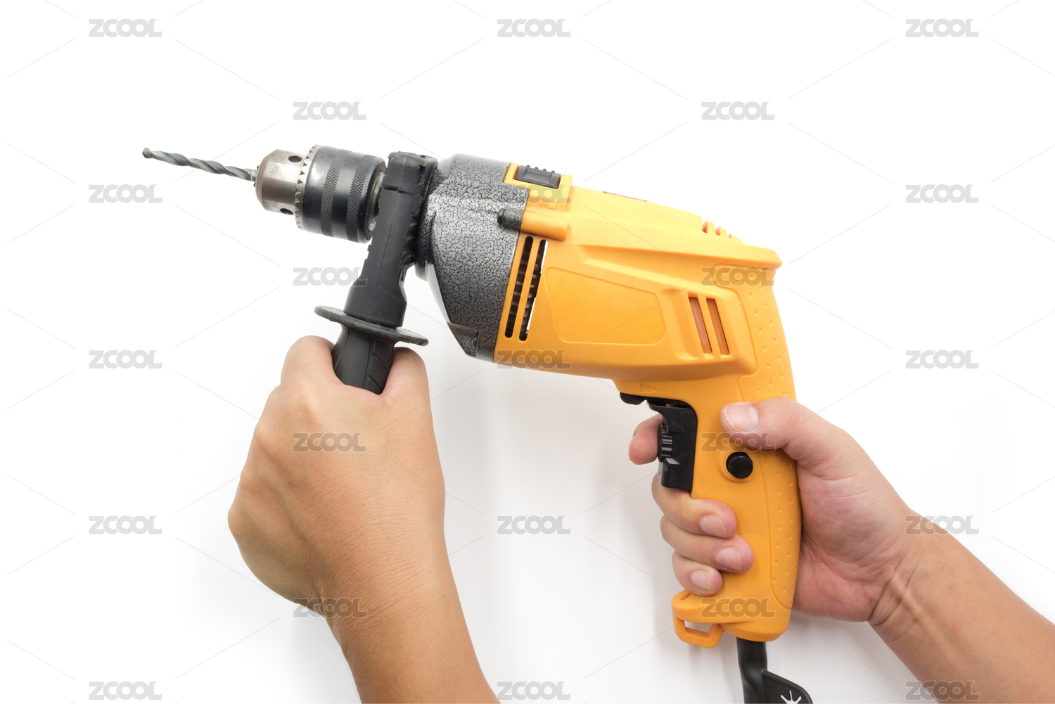 白色背景下手持電鉆電動(dòng)螺絲刀沖擊鉆起子機(jī)