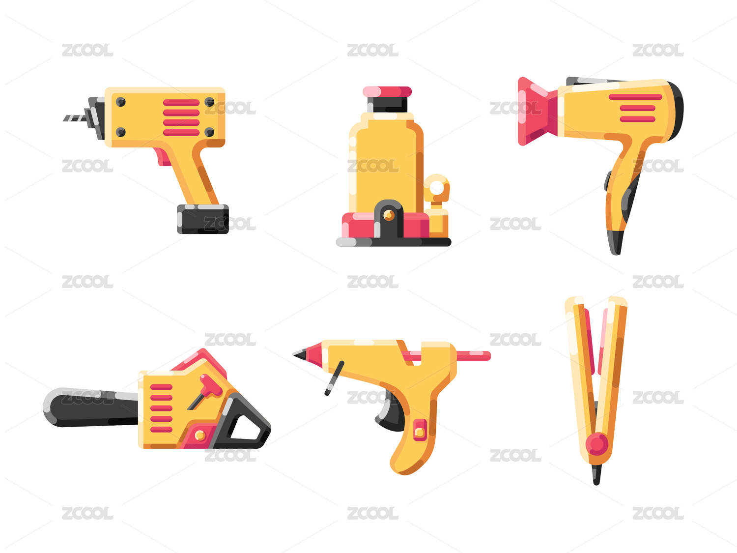 電鉆液壓器吹風(fēng)機(jī)電鋸膠槍燙發(fā)器卷發(fā)器矢量圖形圖標(biāo)