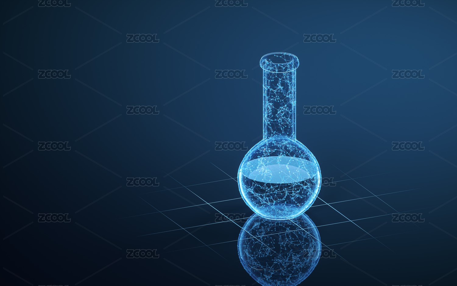 藍(lán)色線條結(jié)構(gòu)燒瓶 3D渲染