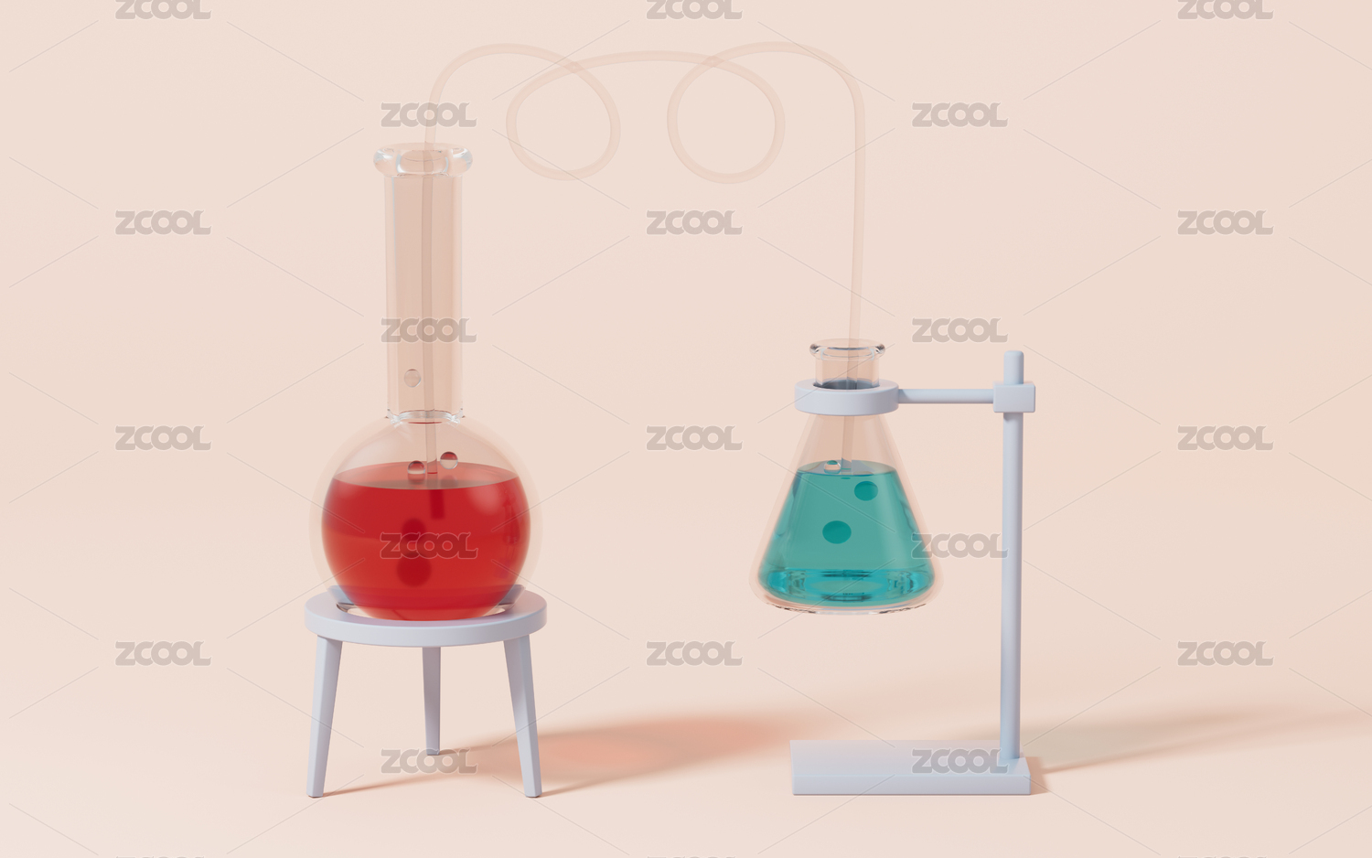 實(shí)驗(yàn)室里的燒瓶和錐形瓶3D渲染