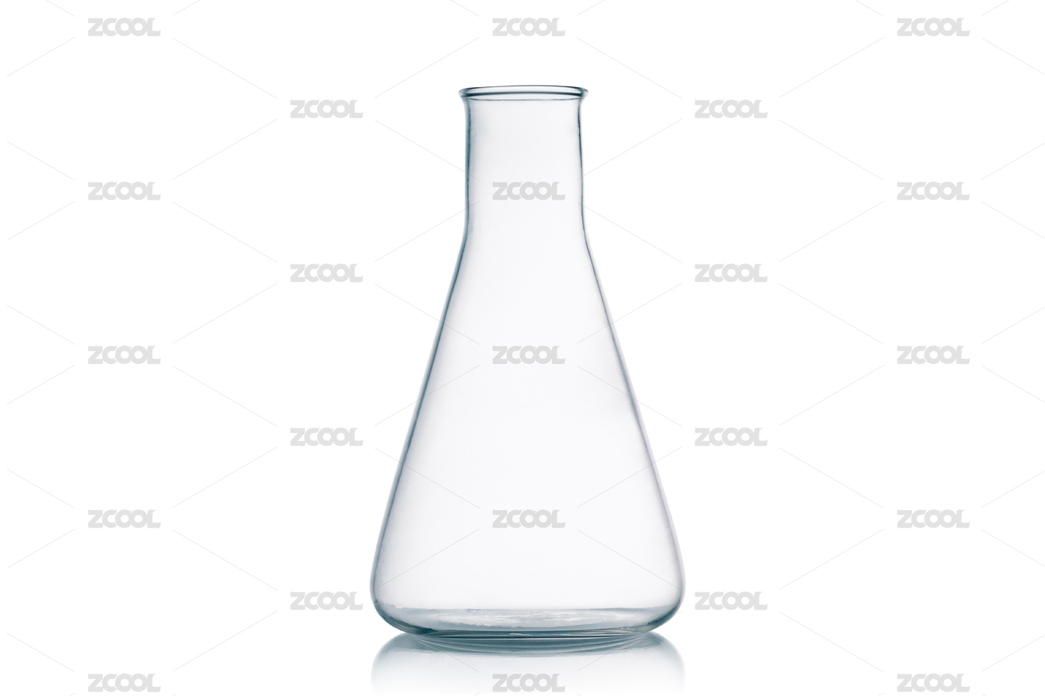 白背景里透明的長(zhǎng)頸圓形燒瓶素材