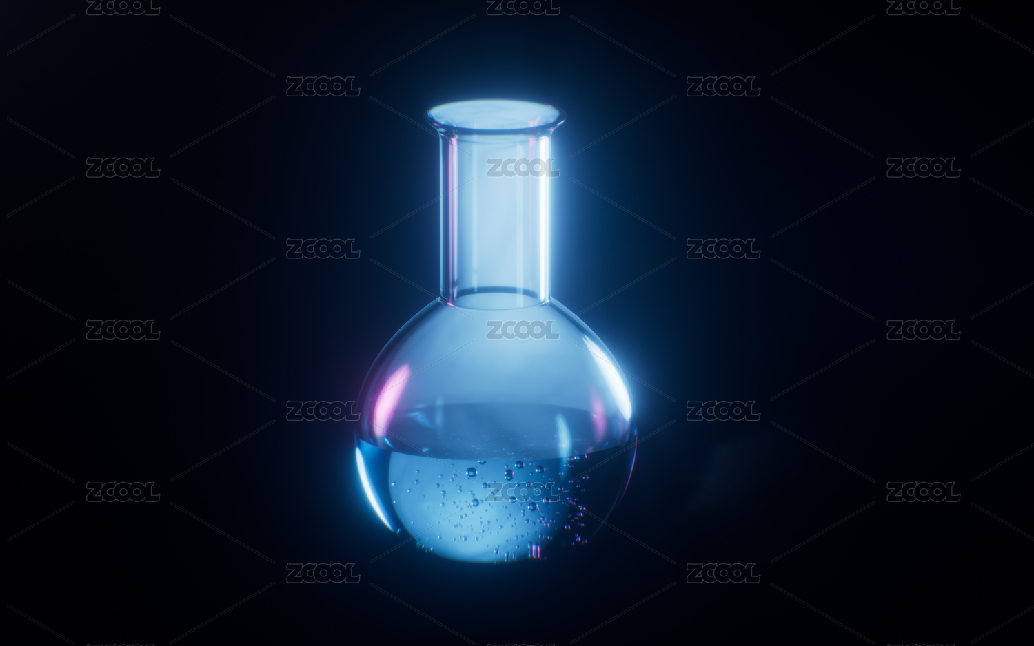 化學(xué)燒瓶與霓虹燈光效果3D渲染