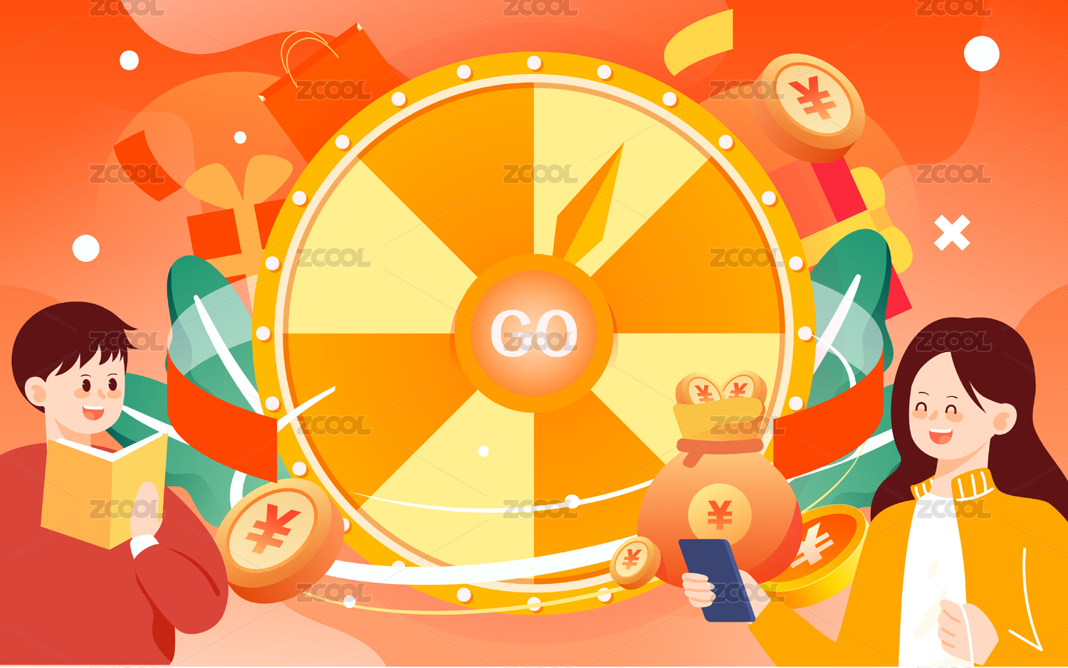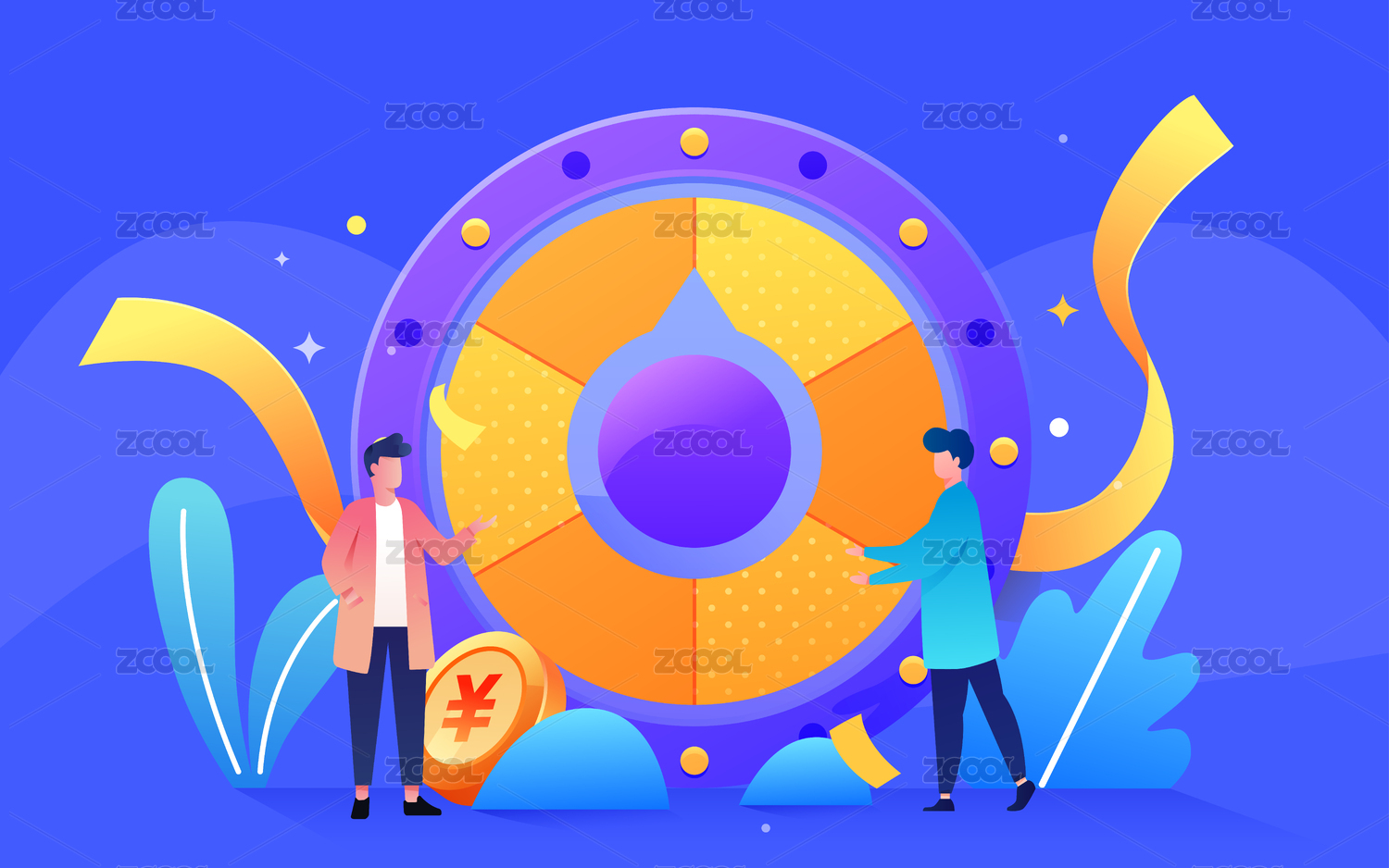 年會(huì)抽獎(jiǎng)轉(zhuǎn)盤活動(dòng)互聯(lián)網(wǎng)金融收益理財(cái)插畫